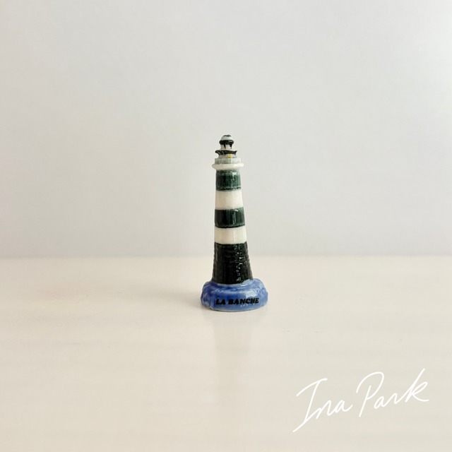 2005年 Alcara社 フランスの有名な灯台シリーズ ♦︎Phare de la Banche ラ・バンシュ灯台 フランス西部のロワール=アトランティック県 サン=ナゼール(Saint-Nazaire)近郊 に位置する灯台。1904年に完成し、河口付近にある砂州「La Banche(浅瀬の意)」から名前が付けられています。 この場所は航行の難所で、灯台は大西洋とロワール川を結ぶ重要な入口を守る存在。特徴的なのは白と黒の横縞模様で、海からも遠くからも視認しやすいデザインになっています。 重厚な着彩と存在感があるシリーズ。 影や石造りのディテールが表現されていたりと丁寧に作られています。 小さな陶器なのに、どの灯台も雰囲気抜群。 飾った場所が風景画ようになってエモーショナル。 船や海、船乗りと合わせたくなりますね♪ 間違いないAlcara社製です。 コンディション:良