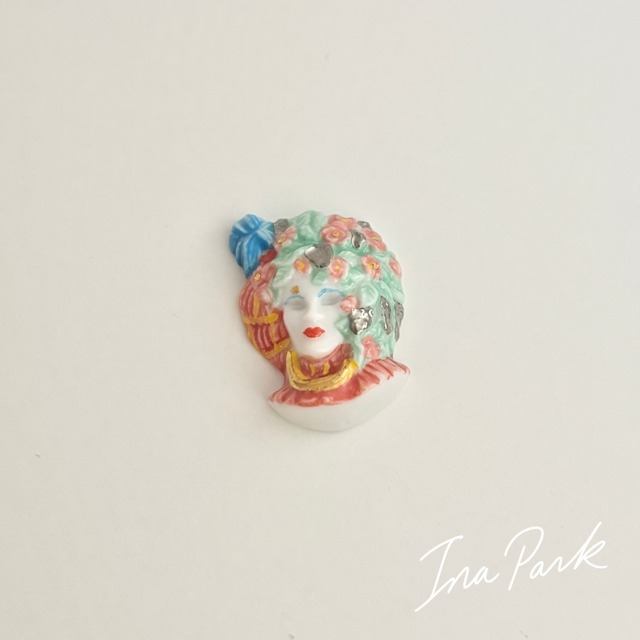 ベネツィア 花いっぱいのマスク イタリア フェーヴ フェーブ フランス製 ミニチュア 陶器 雑貨 置物