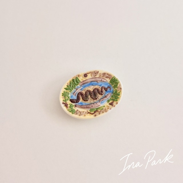 パリッシー様式 蛇と魚の皿 フェーヴ 珠玉の工芸品 フェーブ フランス製 ミニチュア 陶器 雑貨 置物
