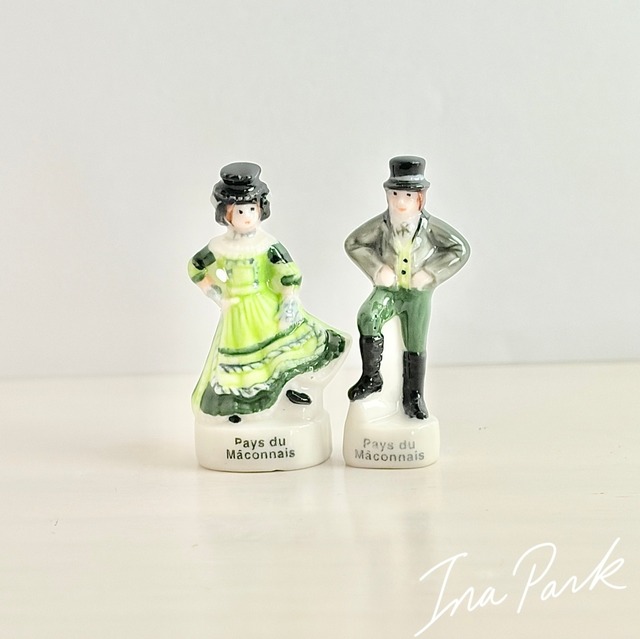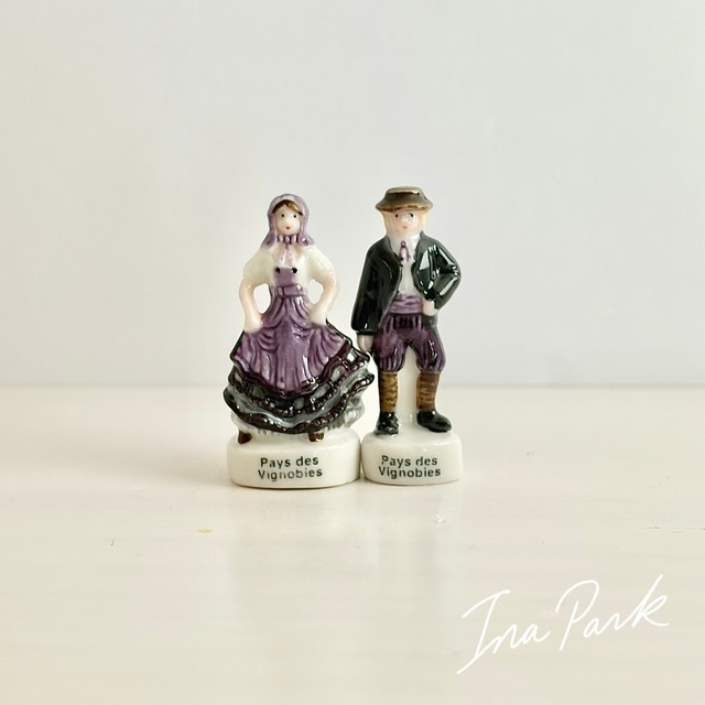 フェーブ ブルゴーニュ地方の伝統衣装 ペア2点 フェーヴ フランス製 ミニチュア 陶器 雑貨 置物