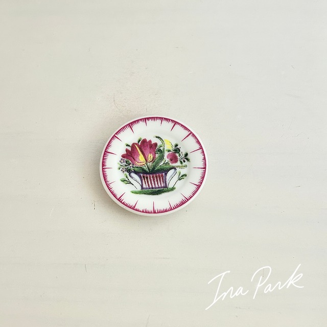19世紀 ルージュ・ド・リュネヴィルの絵皿 陶磁器 フェーヴ フェーブ フランス製 ミニチュア 陶器 雑貨 置物