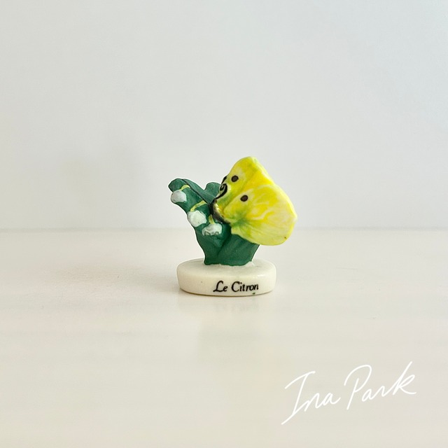 すずらんと黄色い蝶のフェーヴ フェーブ 動物 フランス製ミニチュア陶器 雑貨 置物