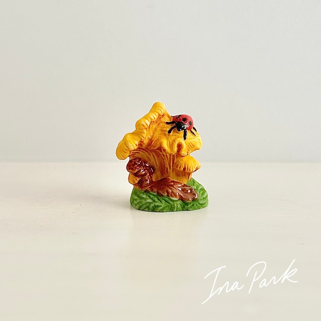 2009年 Prime社 森と草原のきのこシリーズ マット仕上げ ♦︎ アンズタケ(Chanterelle / Girolle) フランス語名はシャントレル。 その中でも特に風味豊かで料理人に愛される種がジロールと呼ばれています。 てんとう虫付き。 きのこのシリーズは色々とありますが、こちらはなかなかのボリュームです。 複数本のキノコに、おまけ付き。 落ち葉だったり、蝶、カエルだったり、カタツムリ、サラマンダー、てんとう虫などなど。 自然そのままの姿を感じさせるシリーズです。 艶のあるきのこフェーブも素敵ですが、こちらはマット質感の雰囲気できのこの柔らかな感じが出ています。 ちょっとレアなフェーブ。 コンディション : 良