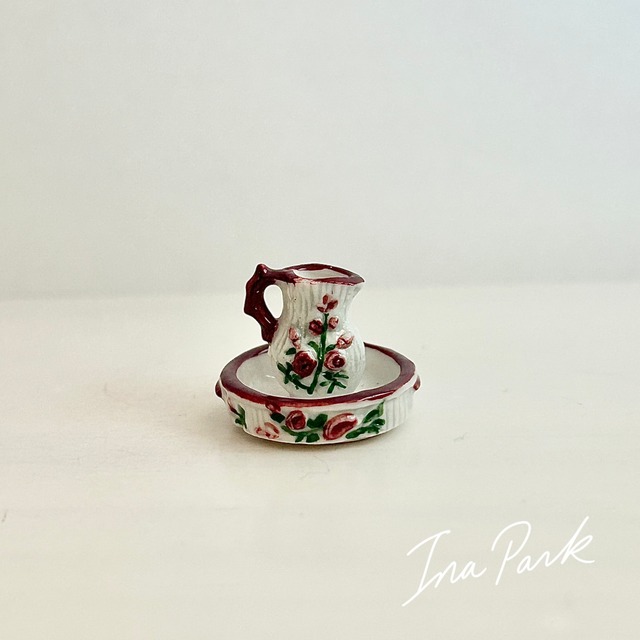 花の模様のボウル 水差し 食器 フェーヴ フェーブ フランス製 ミニチュア 陶器 雑貨 置物