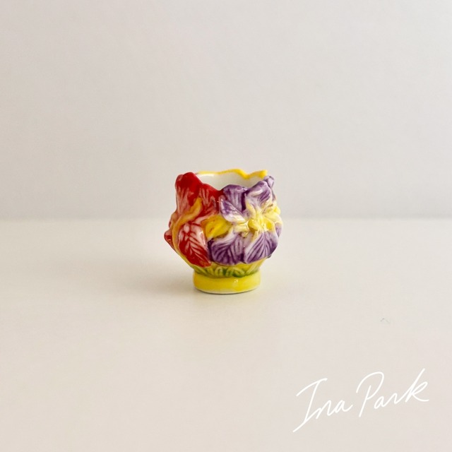 ✴︎Profiter du quotidien✴︎ ✴︎日常を楽しむ✴︎ ※こちらはじめはボウルとピシェのシリーズと書いておりましたが、 製造年不明 珠玉の工芸品シリーズの間違いでした。 ♦︎まるで花でできたような器 すみれやパンジーでしょうか。 バルボティーヌ(Barbotine)スタイルの工芸品です。 ひとつひとつじっくりと見ていただきたい、造形が本当に素晴らしい花器や壺。 Bernard Palissy(ベルナール・パリッシー)の作品やマヨルカ陶器など 色鮮やかな釉薬(うわぐすり)で装飾された実在の工芸品をモチーフにしていると思われるシリーズです。なんと言っても色がどれも華やか。凝りに凝った珠玉の品です。 コンディション :目立つ傷汚れなし 美品