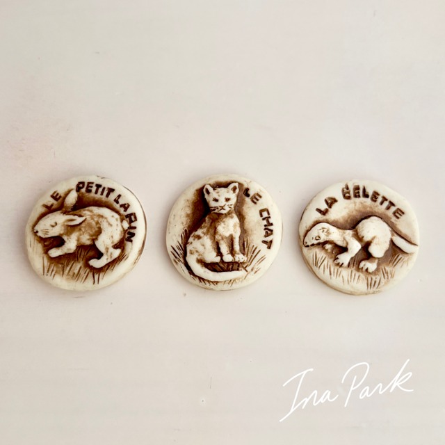 【ご希望の商品を選択して下さい】 LA FONTAINE FABLE 1996 シリーズ ラ・フォンテーヌ寓話 ジャン・ド・ラ・フォンテーヌ(Jean de La Fontaine)は17世紀フランスの寓話作家。 動物が主役の寓話など物語を通して人間の性格・社会・教訓を描きました。フランスでは非常に教養的・古典的な題材です。 このシリーズに選ばれている 猫・ウサギ・イタチは、ラ・フォンテーヌ寓話の中でも頻出する動物達で、それぞれ異なる立場を象徴する動物。 ・ウサギ:弱く無垢な存在 ・猫:力や権威を持つ存在 ・イタチ:冷徹に立ち回る存在 この3種を並べることで、 弱者・狡猾な者・権力者という対照的な役割が揃い、 寓話が描く人間社会の縮図というテーマです。 動物の「かわいさ」ではなく、象徴性を重視したモチーフ選択で、ミッドガールらしい思索的なテーマ性が垣間見られます。 ✴︎Midgard ミッドガール ノルマンディ地方・サント・アドレス ミッドガールは歴史のある工房で、父親のジャン・ピエール氏が亡くなった後 息子のムッシュー・デブリスさんが デザイン・型作り・調整・絵付けまで すべて手作業で行っておられます 。 高温で焼成される磁器製で、硬質なのに柔らかい白い色。 マットな作風なのにすべすべとした感触、というような、一目でミッドガールと分かる唯一無二の魅力と質感を持っています。 技術とアート性が高いフェーブ達は、本物のアーティスト作品です。 ♦︎コンディション:美品