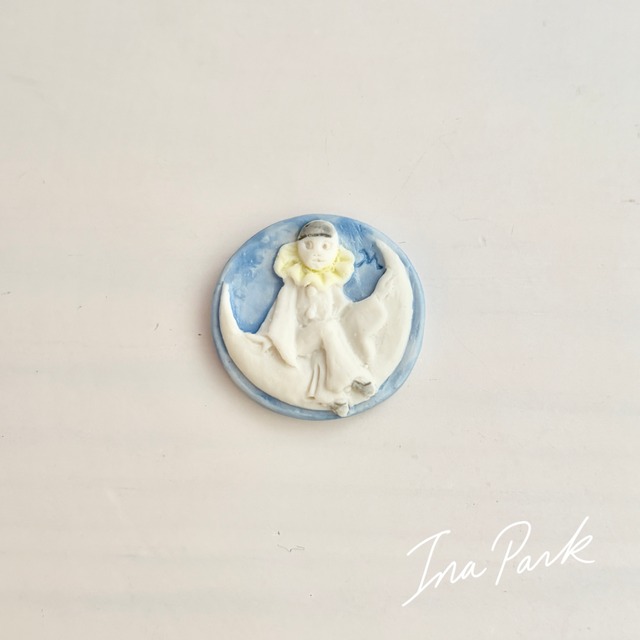 1999年 ♦︎月のピエロとコロンビーヌシリーズより こちらは最初に作られた月のピエロシリーズ。 静かで詩的な雰囲気があり、とても素敵な作品です。 90年代の作品なのに、経年の汚れや劣化等はあまり感じられません。 扱っていて感じることなのですが、ミッドガールは裏も表も全体的に表面がすべすべサラサラしているような質感で、汚れにくいんです。 パタフィックスでくっつけられていても、すぐに綺麗に剥がれます。 高温焼成され、引き締まったミッドガールならではの特性です。 ✴︎Midgard ミッドガール ノルマンディ地方・サント・アドレス ミッドガールは歴史のある工房で、父親のジャン・ピエール氏が亡くなった後 息子のムッシュー・デブリスさんが デザイン・型作り・調整・絵付けまで すべて手作業で行っておられます 。 高温で焼成される磁器製で、硬質なのに柔らかい白い色。 マットな作風なのにすべすべとした感触、というような、一目でミッドガールと分かる唯一無二の魅力と質感を持っています。 技術とアート性が高いフェーブ達は、本物のアーティスト作品です。 ♦︎コンディション:目立つ傷汚れなし