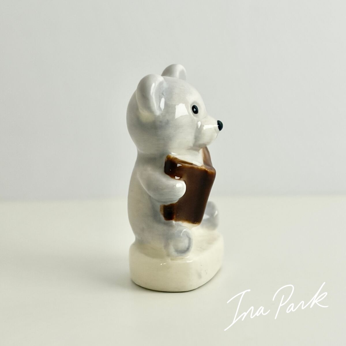 2017年 本を読むクマのフェーヴ フェーブ テディベア フランス製 ミニチュア 陶器 雑貨