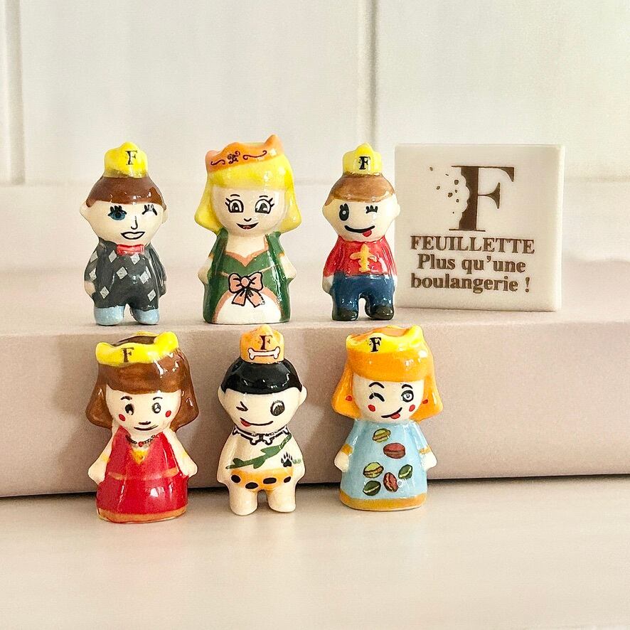フイエットはお菓子のフェーヴが人気ですが、こんなに可愛いキャラクターのオリジナルフェーヴも存在します。それぞれの服も凝ったデザイン。