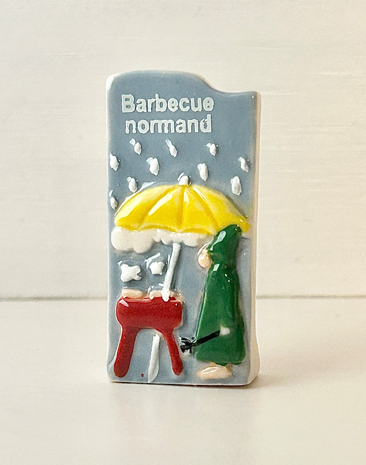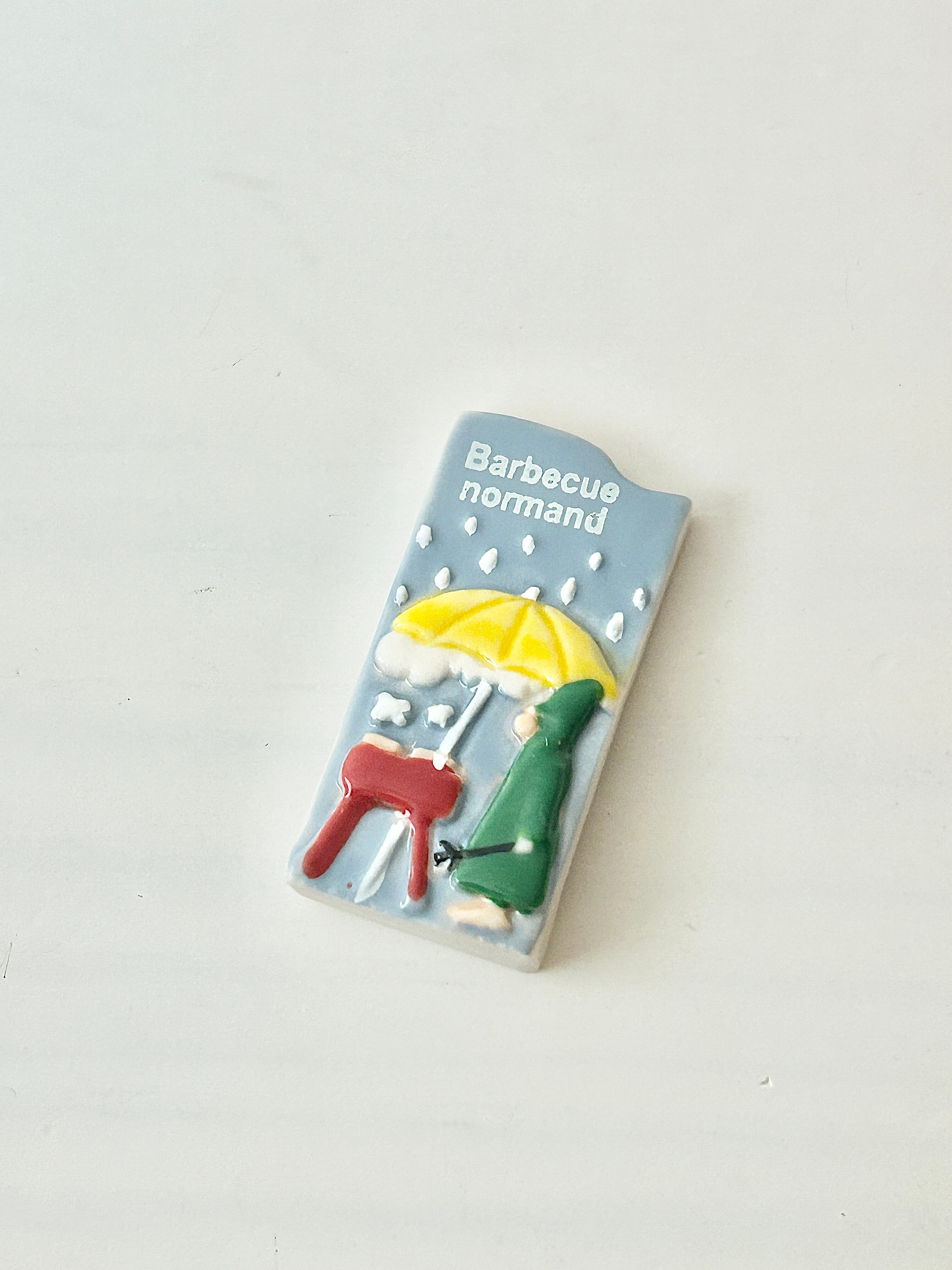 2019 hihihi ノルマンディー 雨の中でもBBQ フェーヴ フェーブ フランス製 ミニチュア 陶器 a37