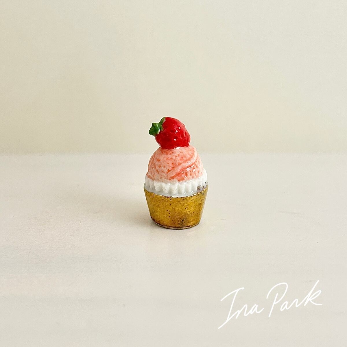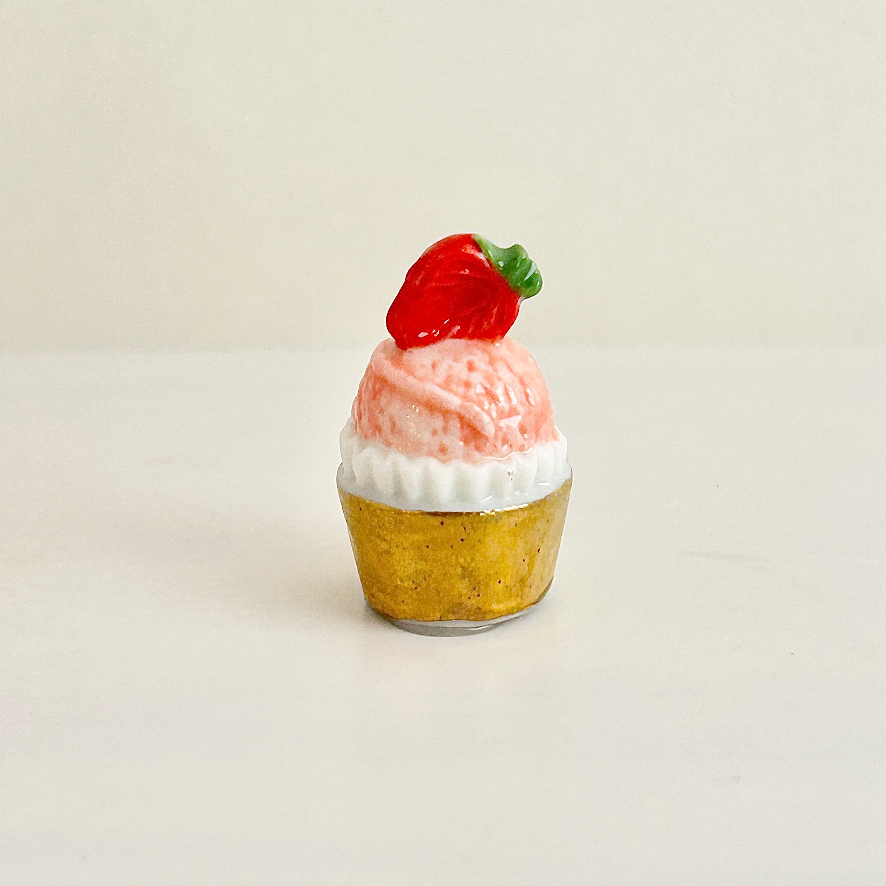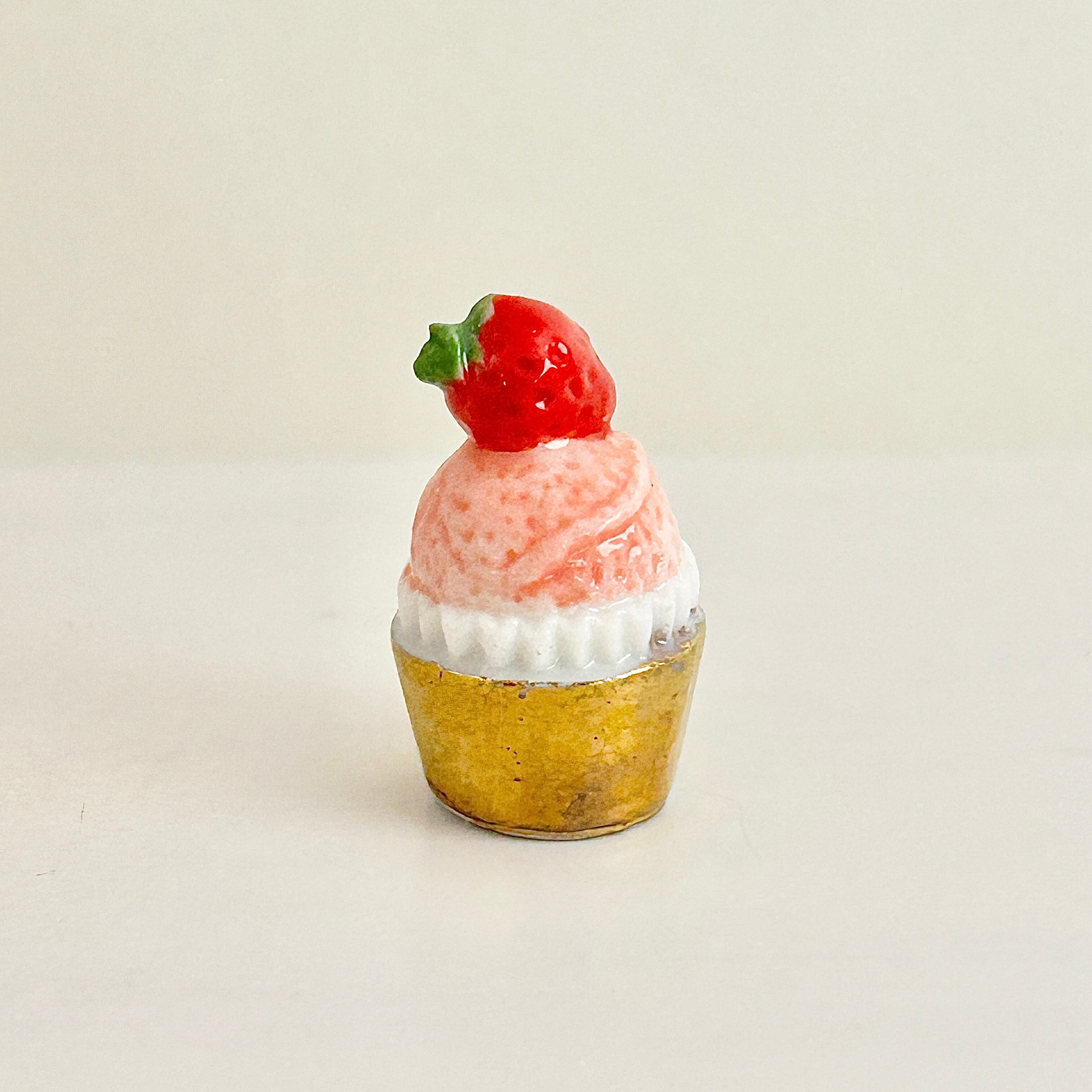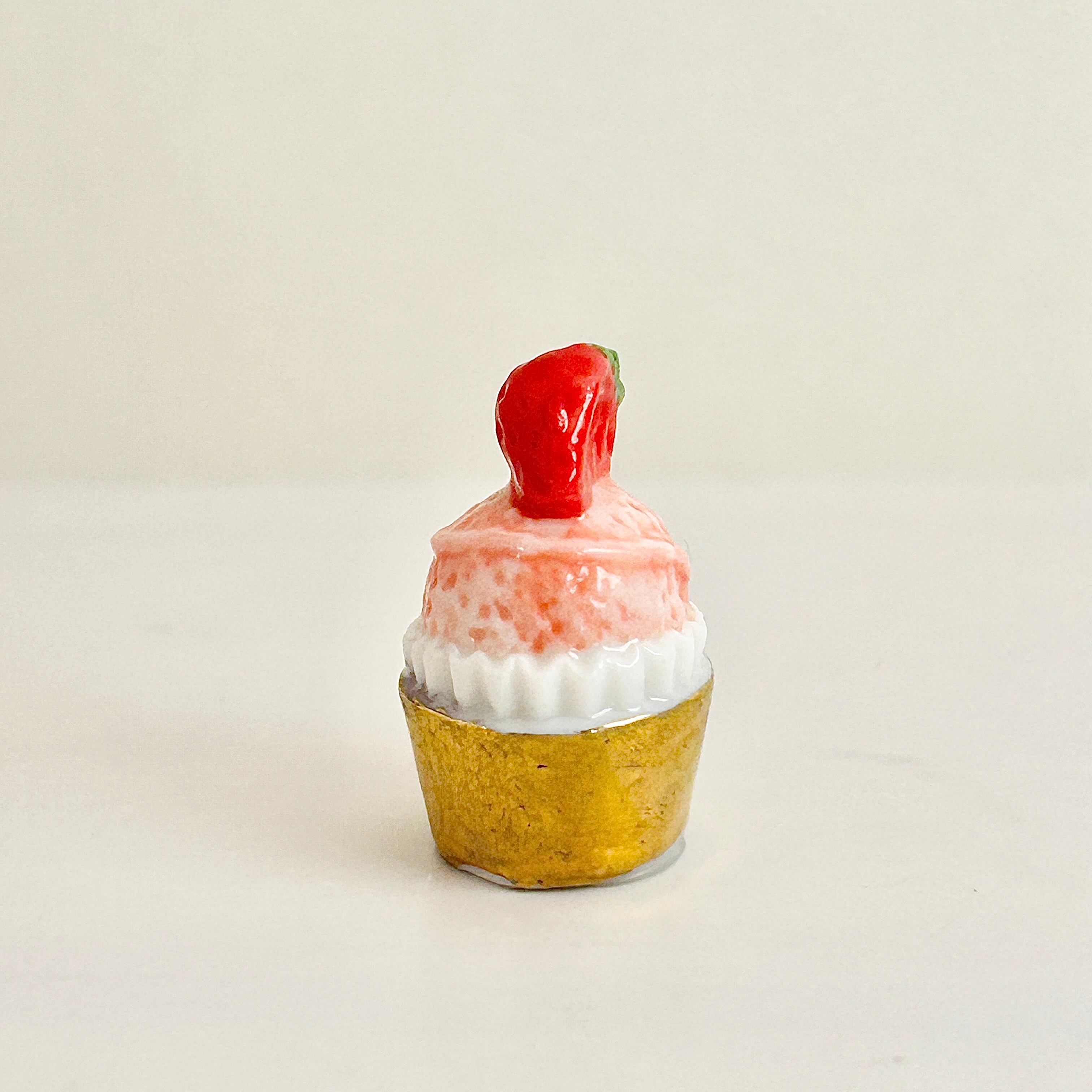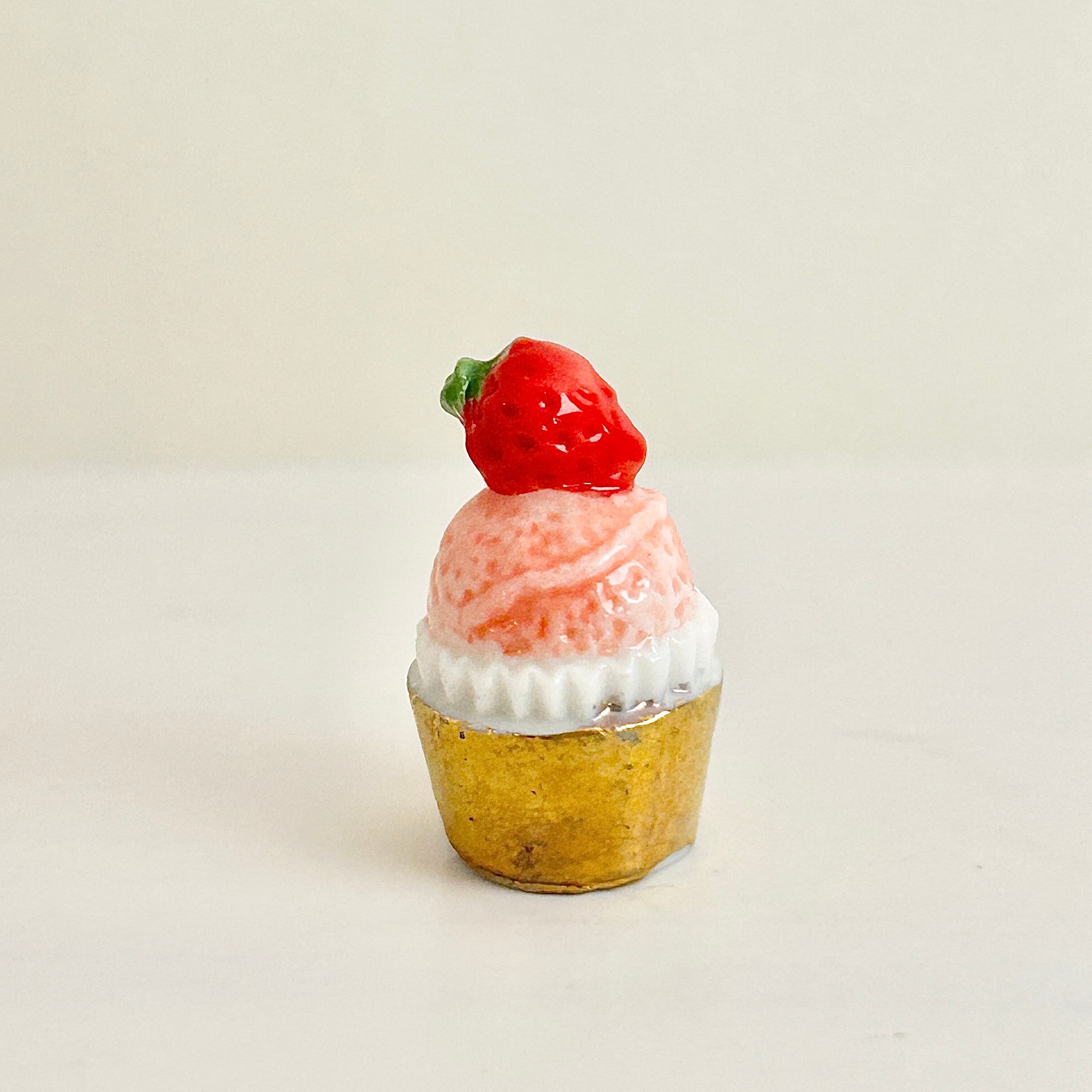苺 いちごのカップケーキ フェーヴ フェーブ ミニチュアスイーツ ドールハウス フィギュア フランス製 陶器 a
