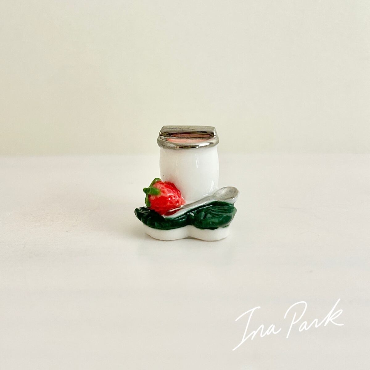 苺 いちごのヨーグルト フェーヴ フェーブ ミニチュアスイーツ ドールハウス フィギュア フランス製 陶器 a50