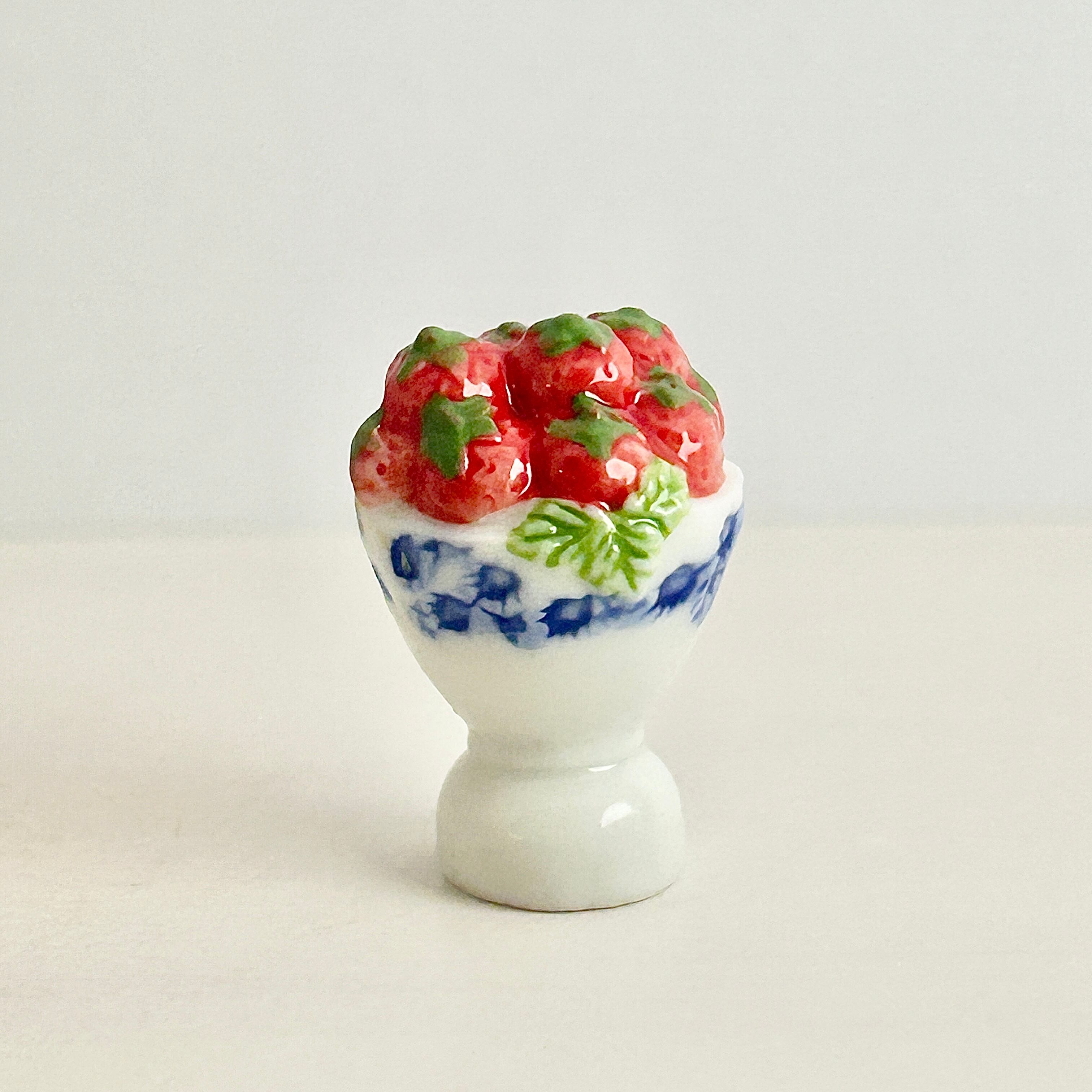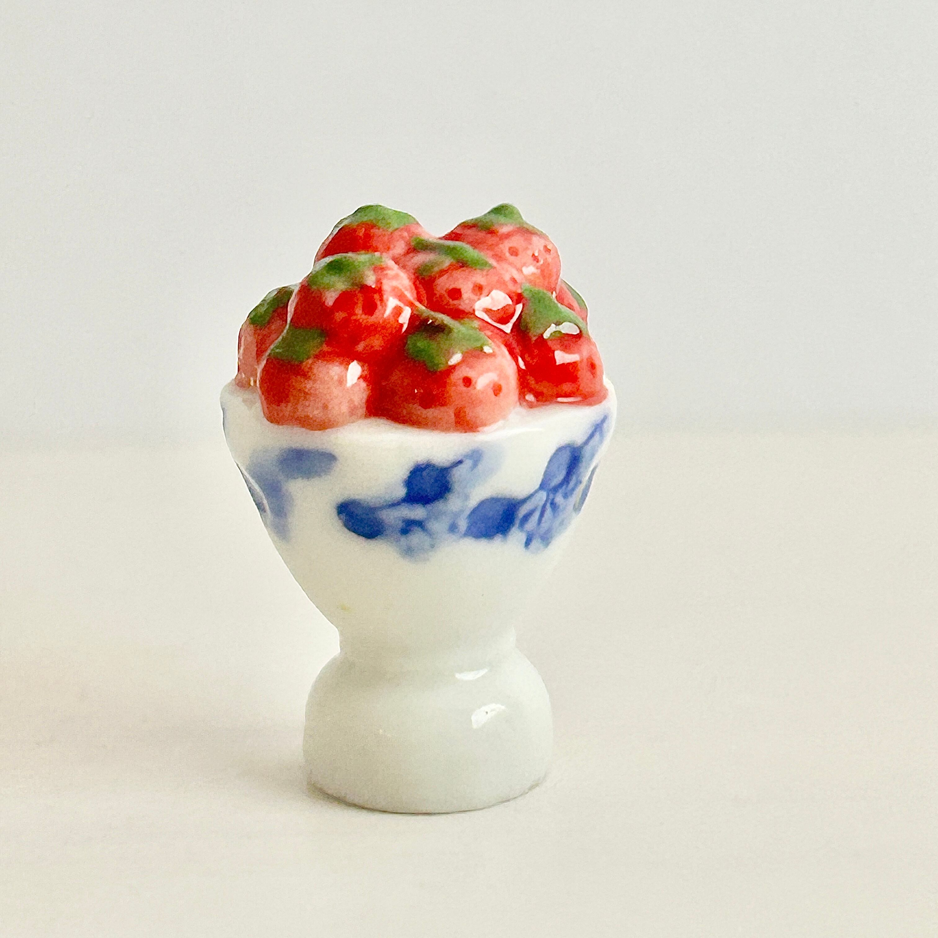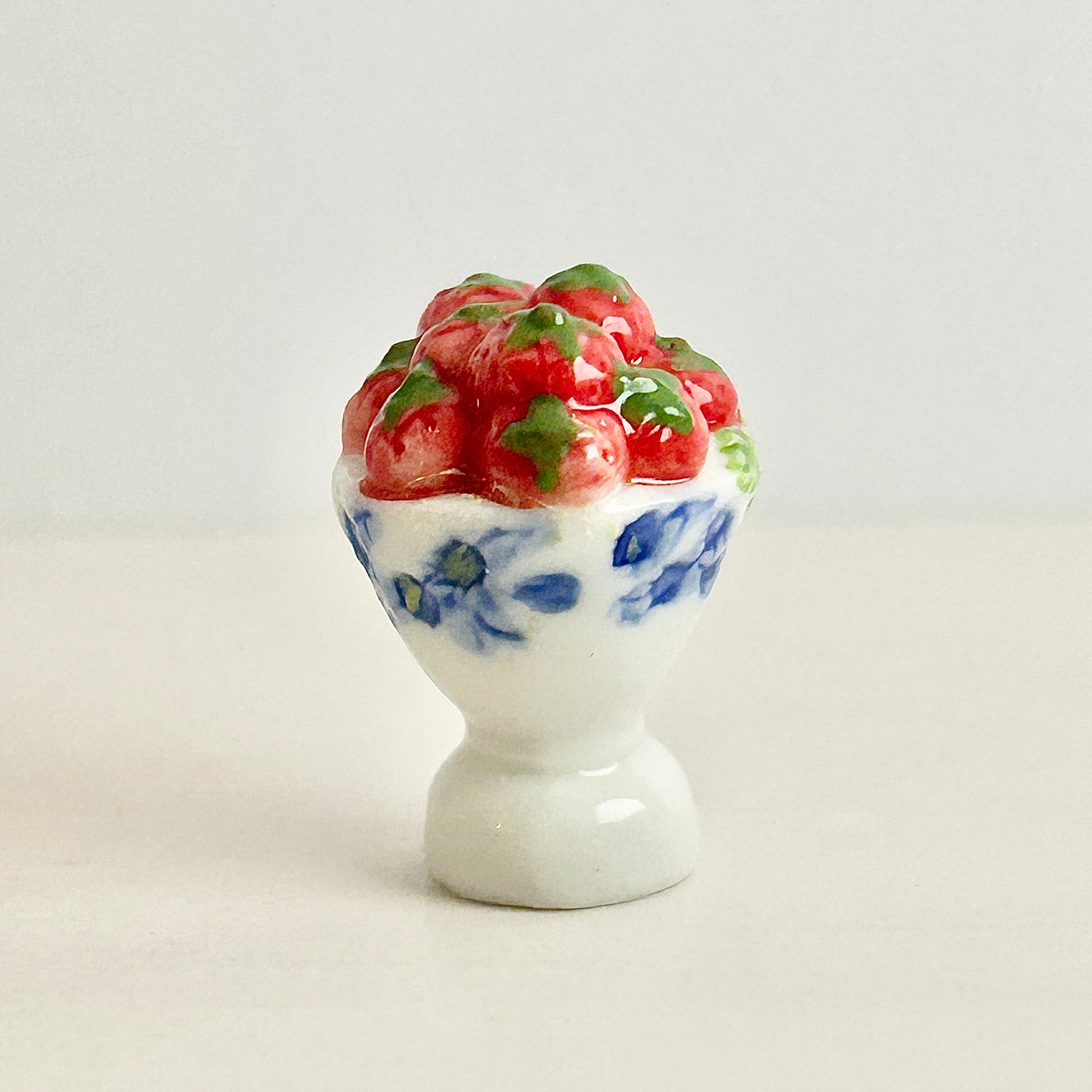 陶器のゴブレットに盛られた 苺 いちご フェーヴ フェーブ ミニチュアスイーツ ドールハウス フィギュア フランス製 陶器 a56