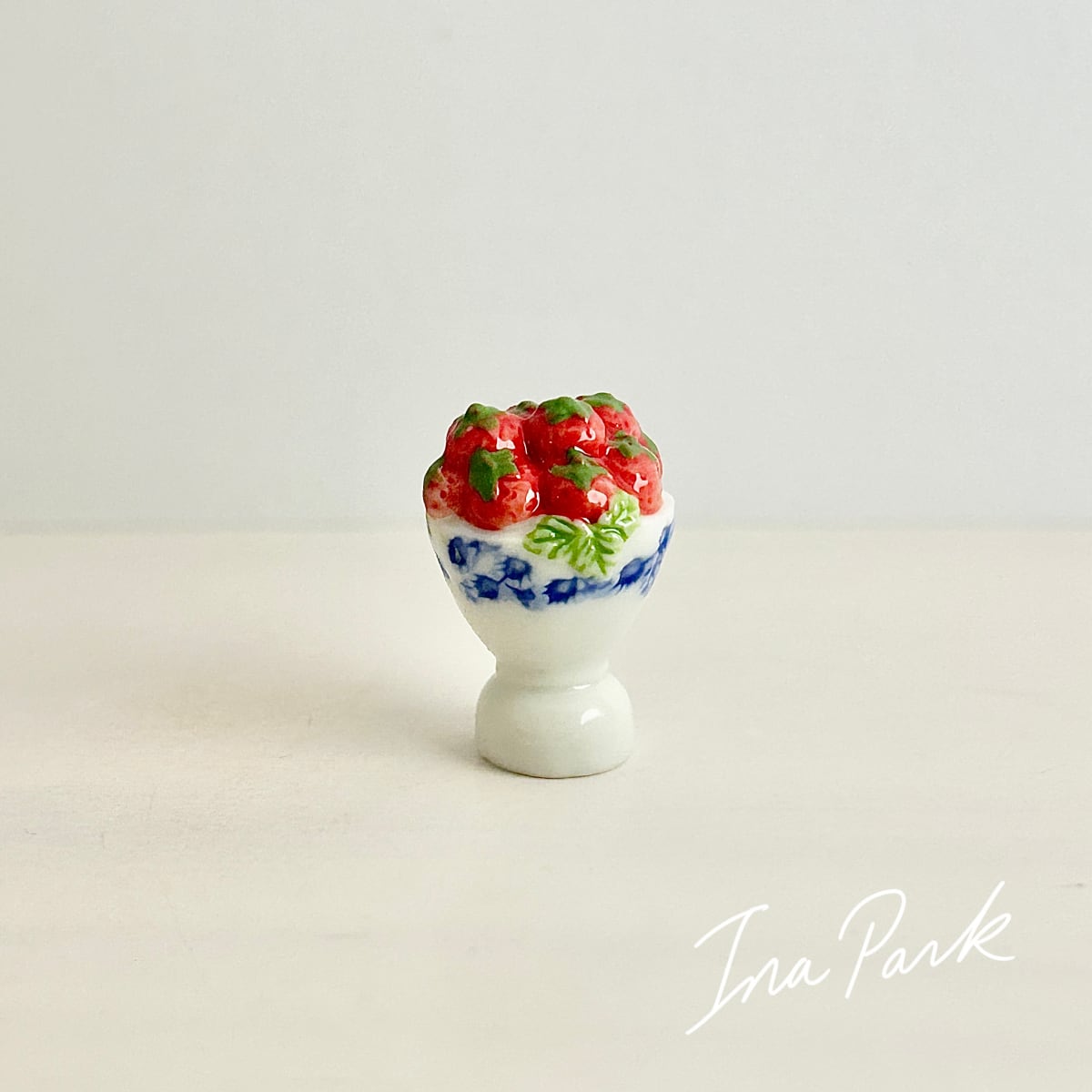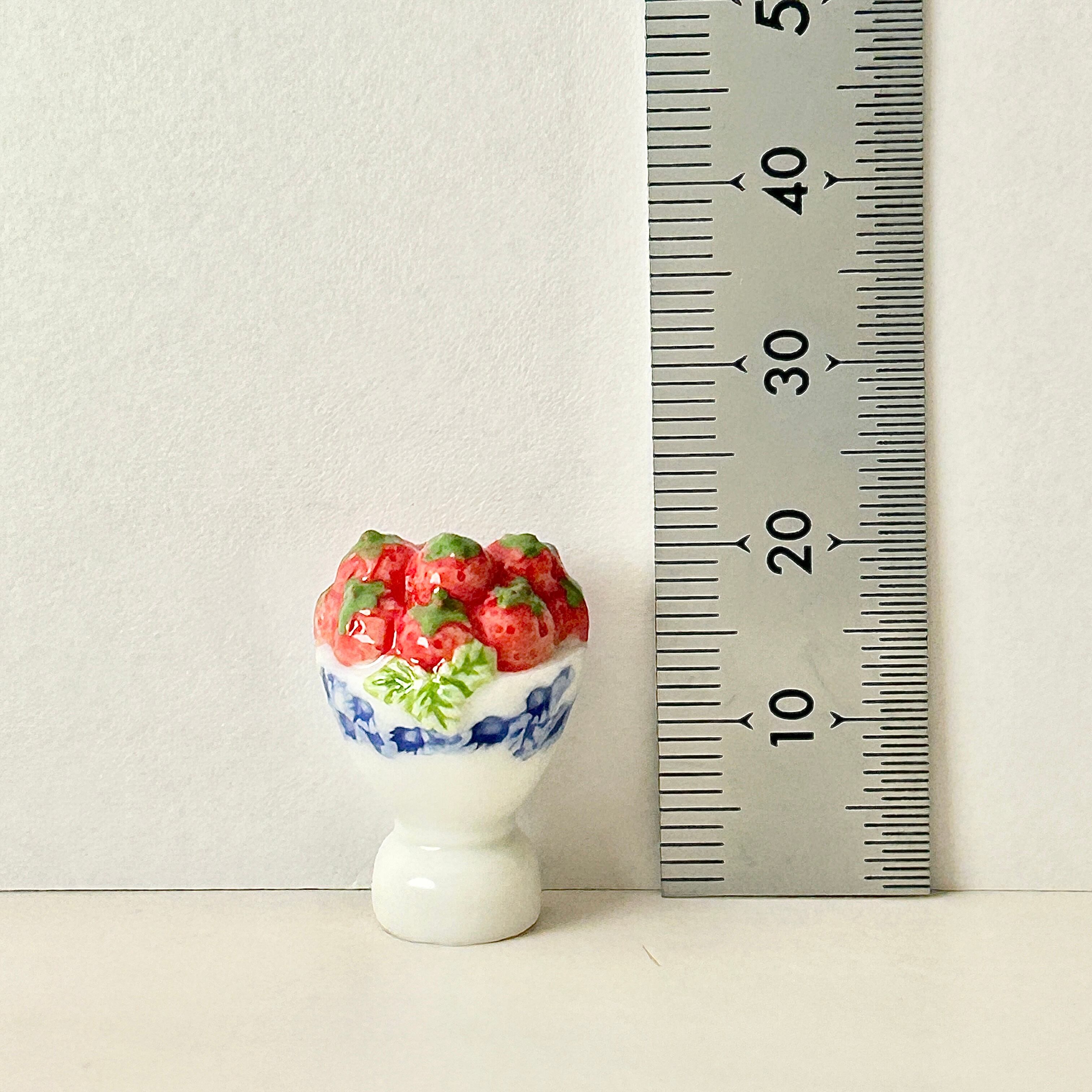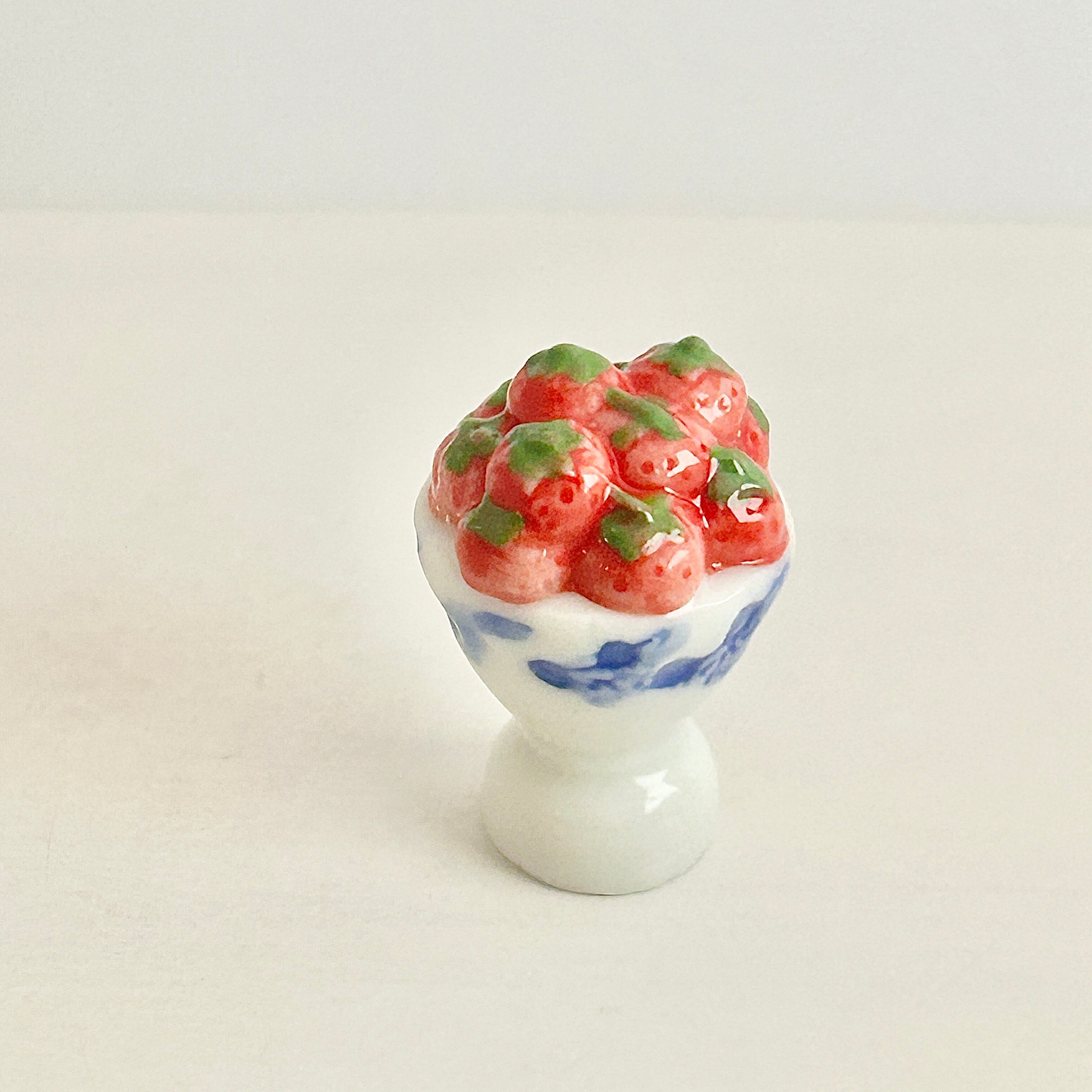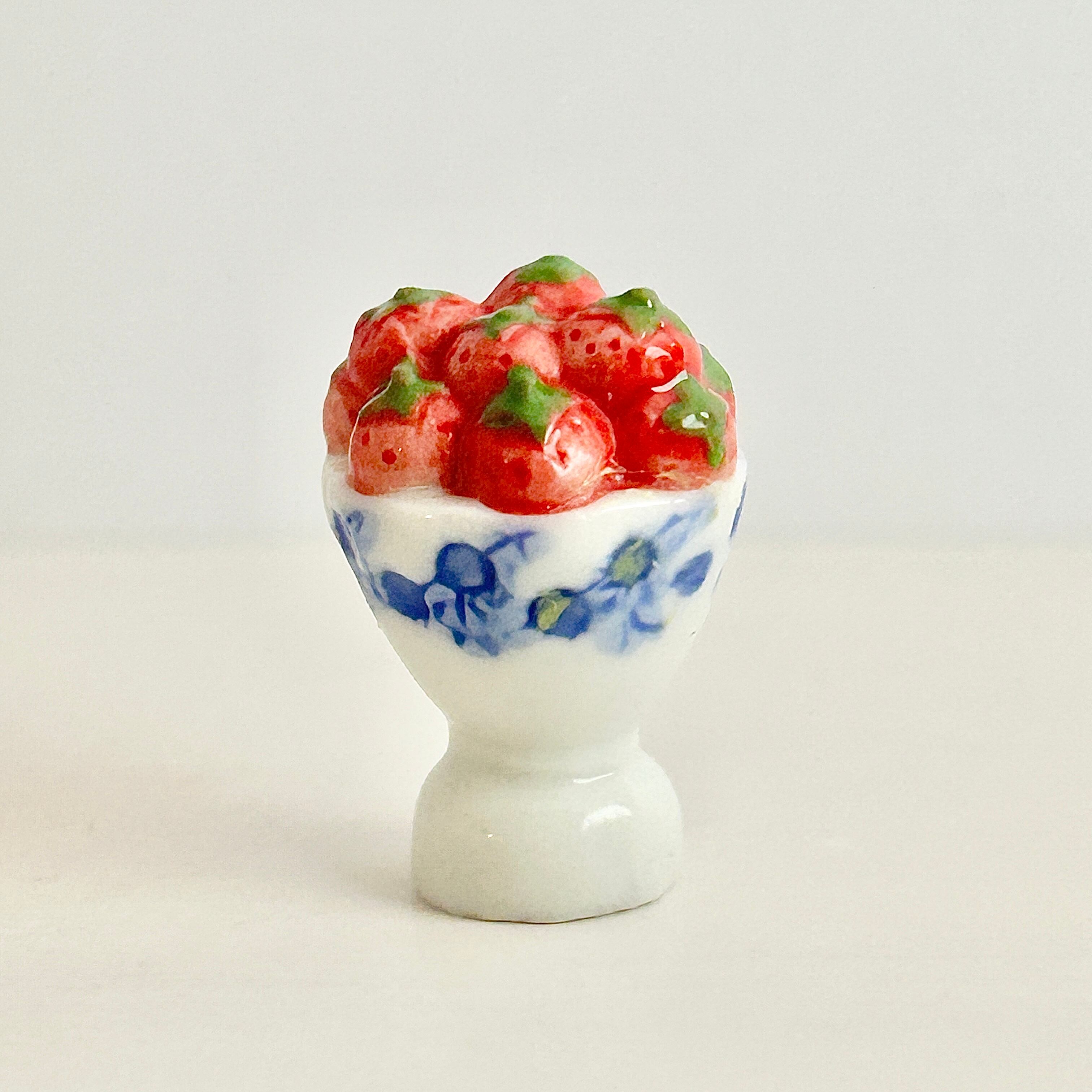 陶器のゴブレットに盛られた 苺 いちご フェーヴ フェーブ ミニチュアスイーツ ドールハウス フィギュア フランス製 陶器 a56