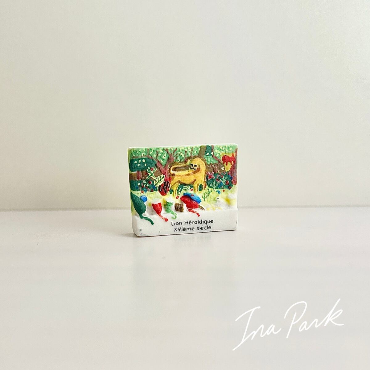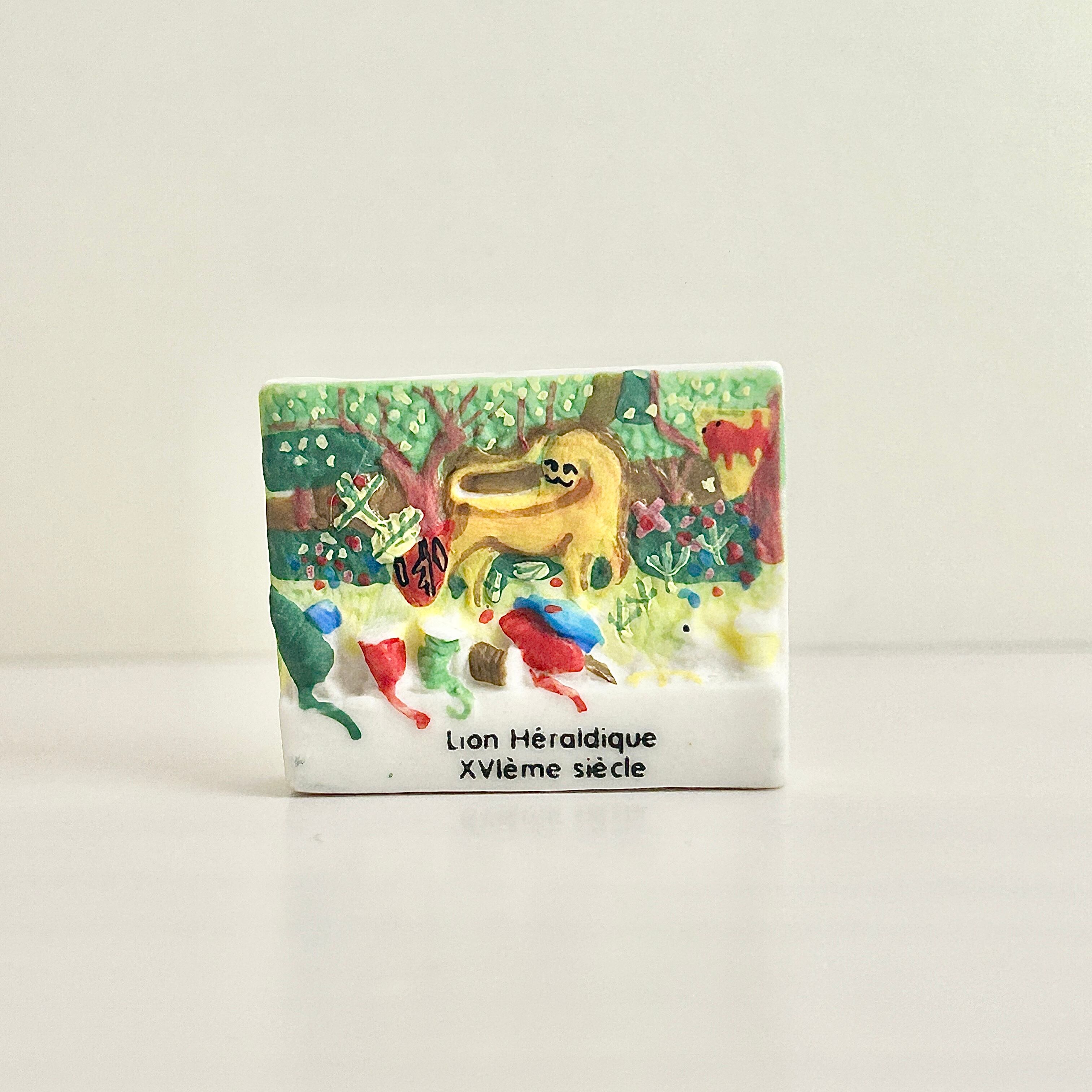 2006フランス製 古のタペストリー 紋章のライオン のフェーヴ フェーブ ミニチュア 陶器