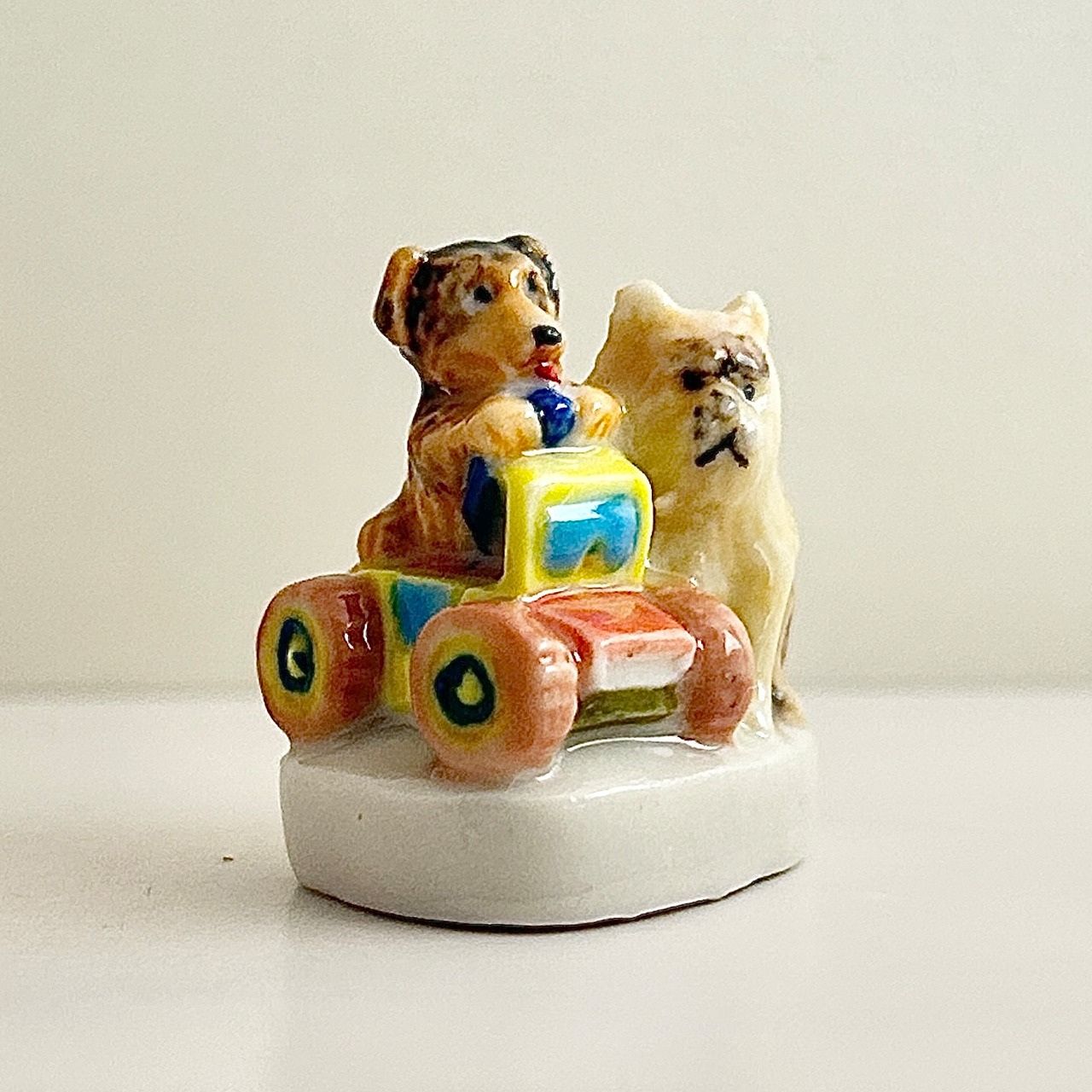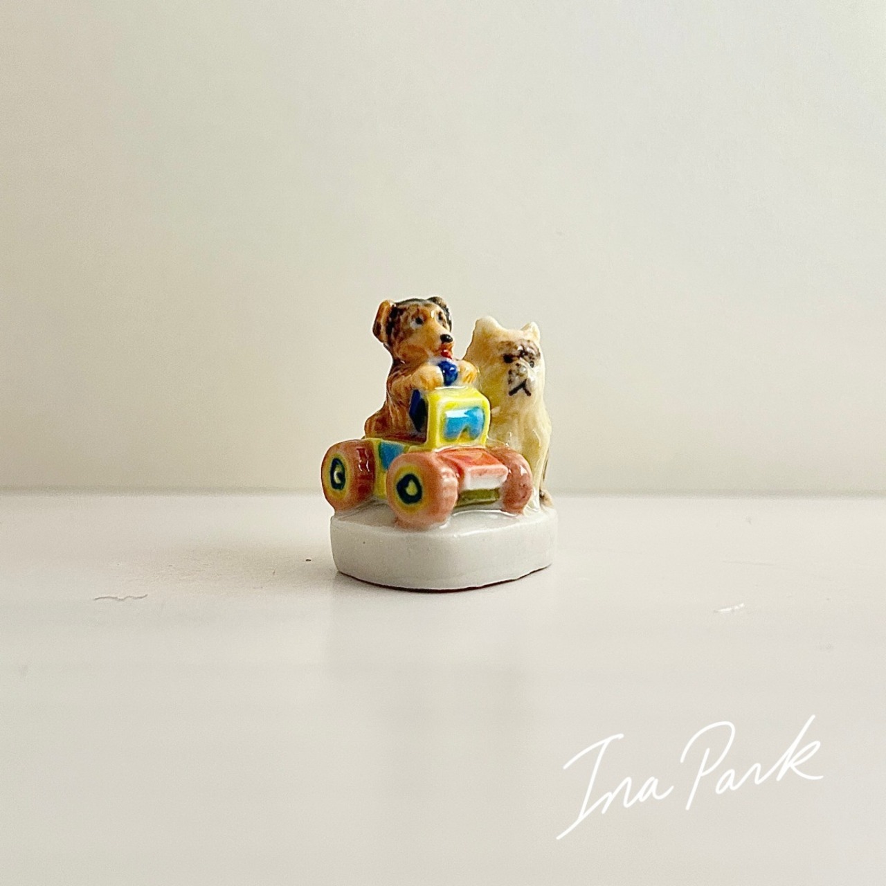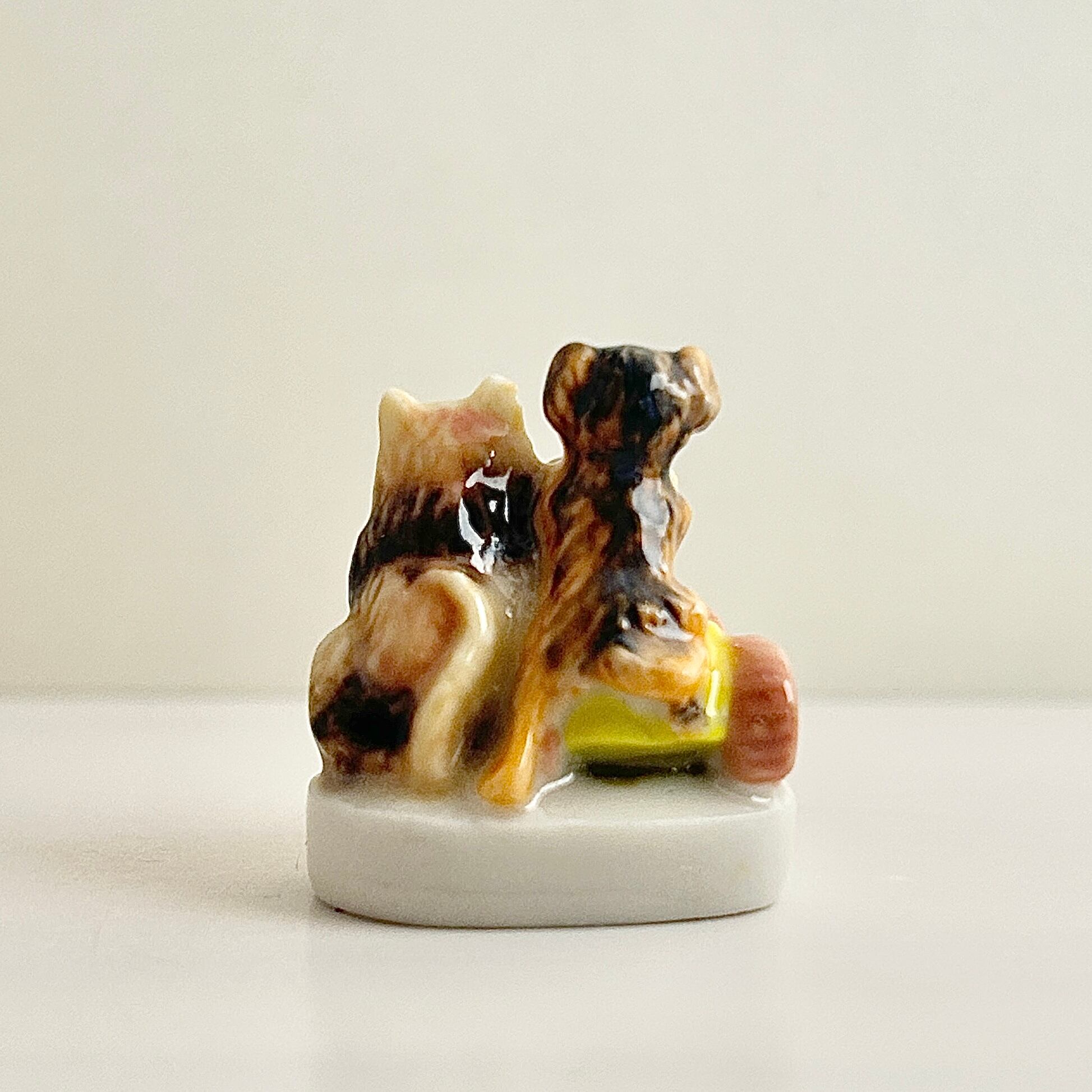 【レア】フランス製 子犬と子猫のフェーヴ ねこ フェーブ ミニチュア 陶器 雑貨 インテリア