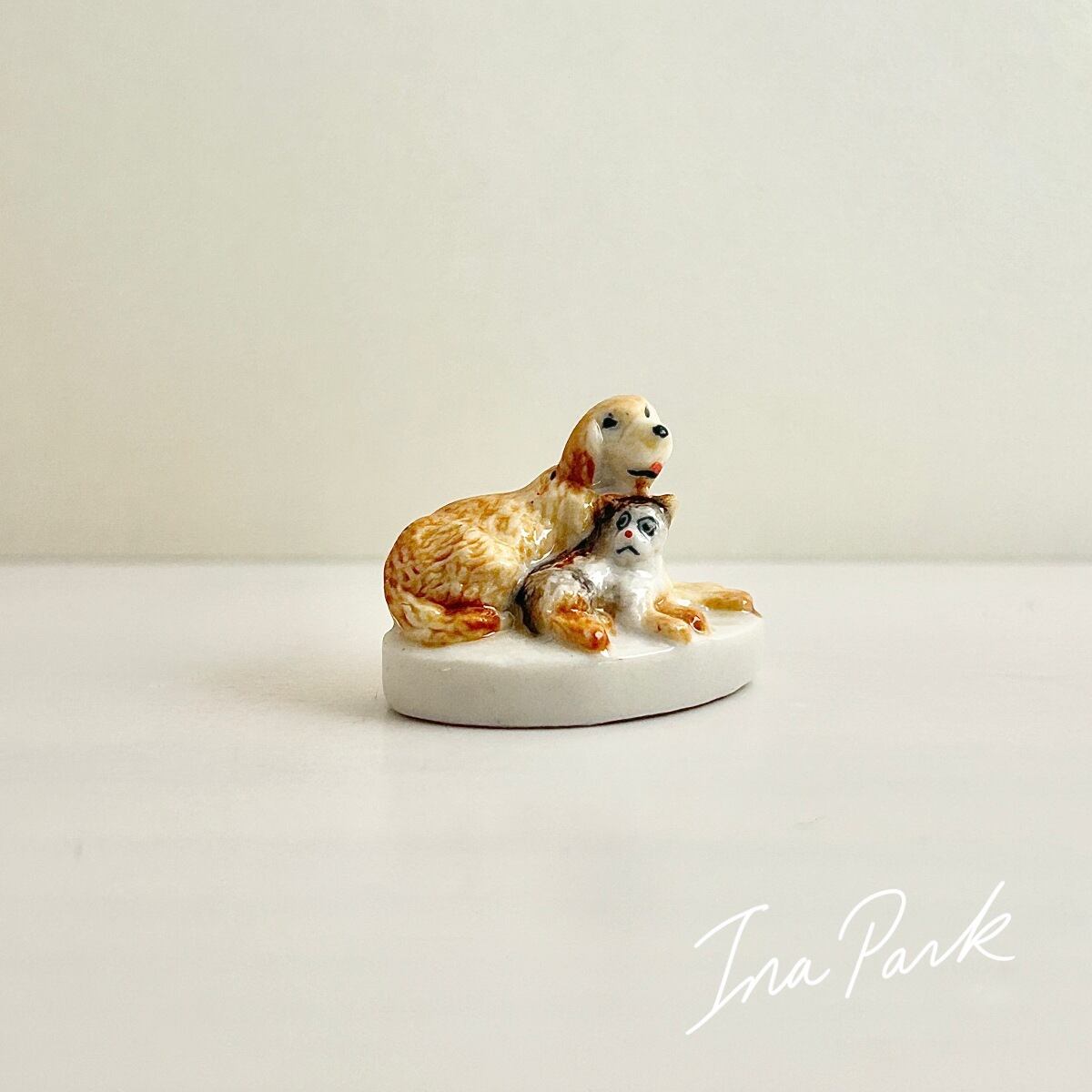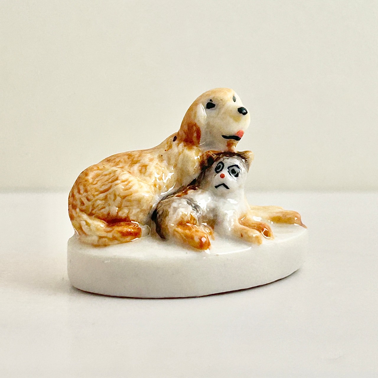 【レア】フランス製 子犬と子猫のフェーヴ ねこ フェーブ ミニチュア 陶器 雑貨 インテリア