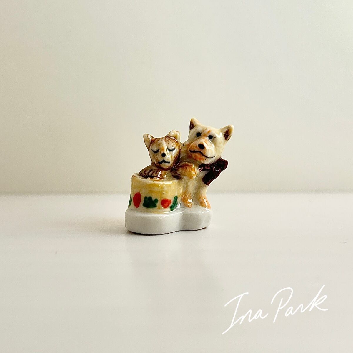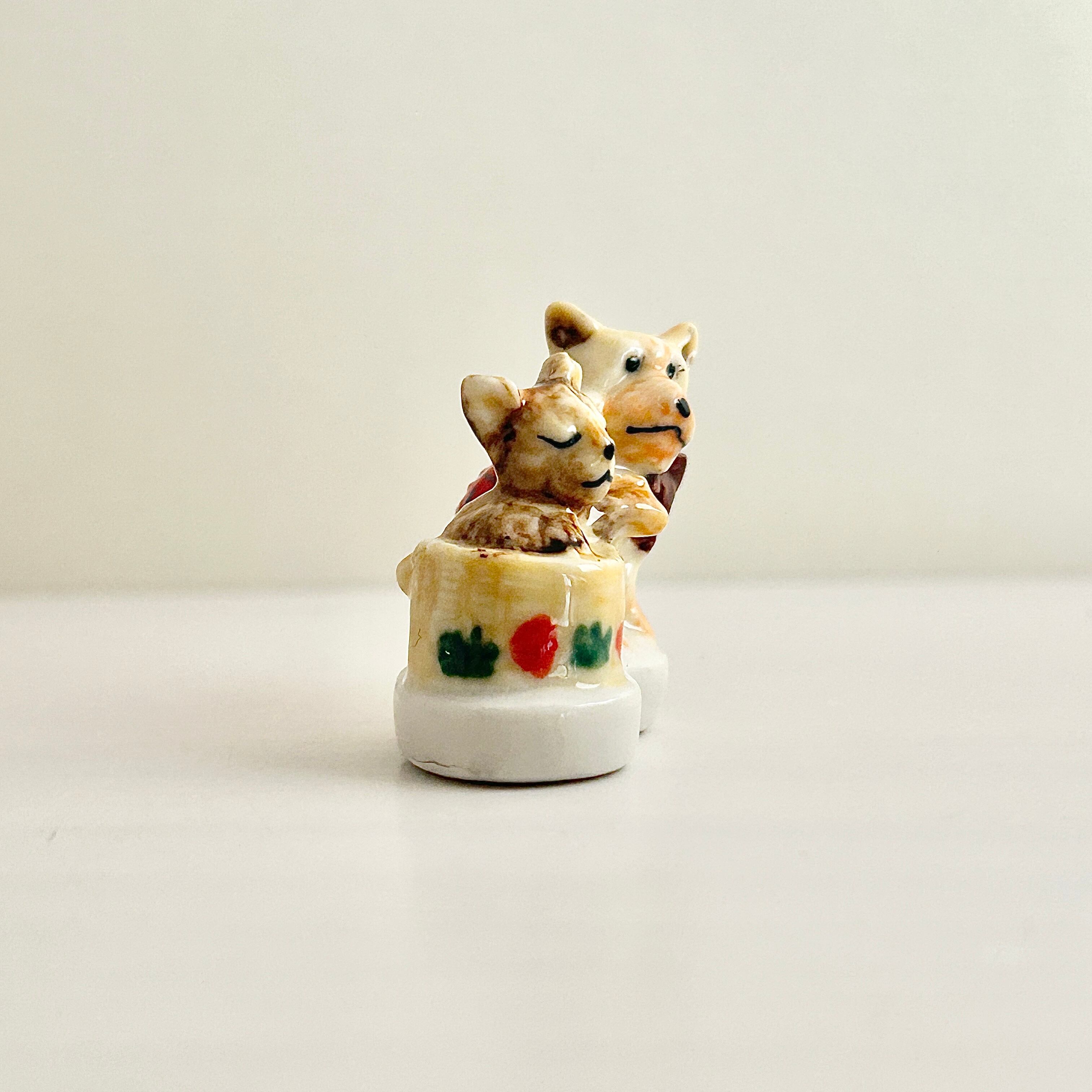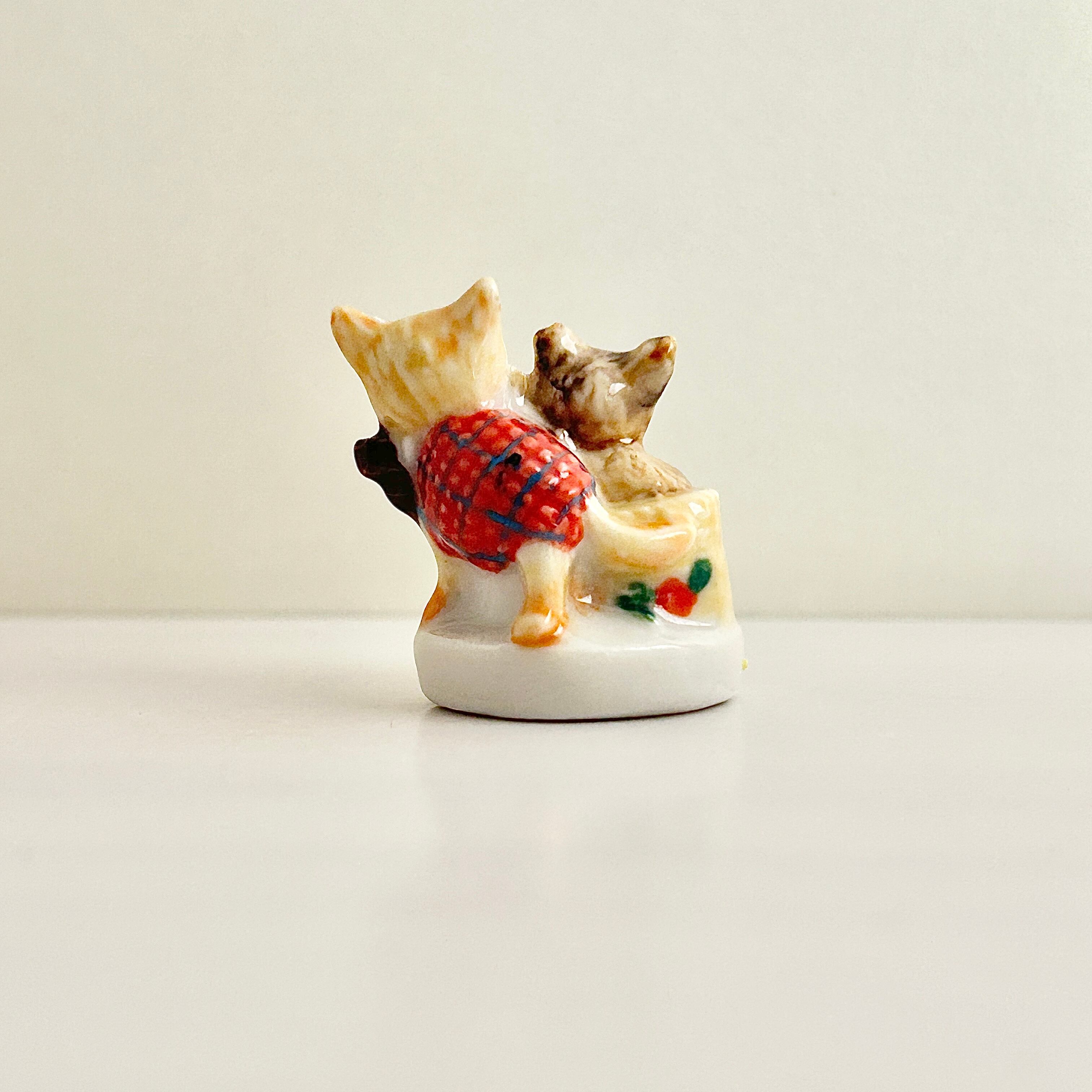 【レア】フランス製 子犬と子猫のフェーヴ ねこ フェーブ ミニチュア 陶器 雑貨 インテリア