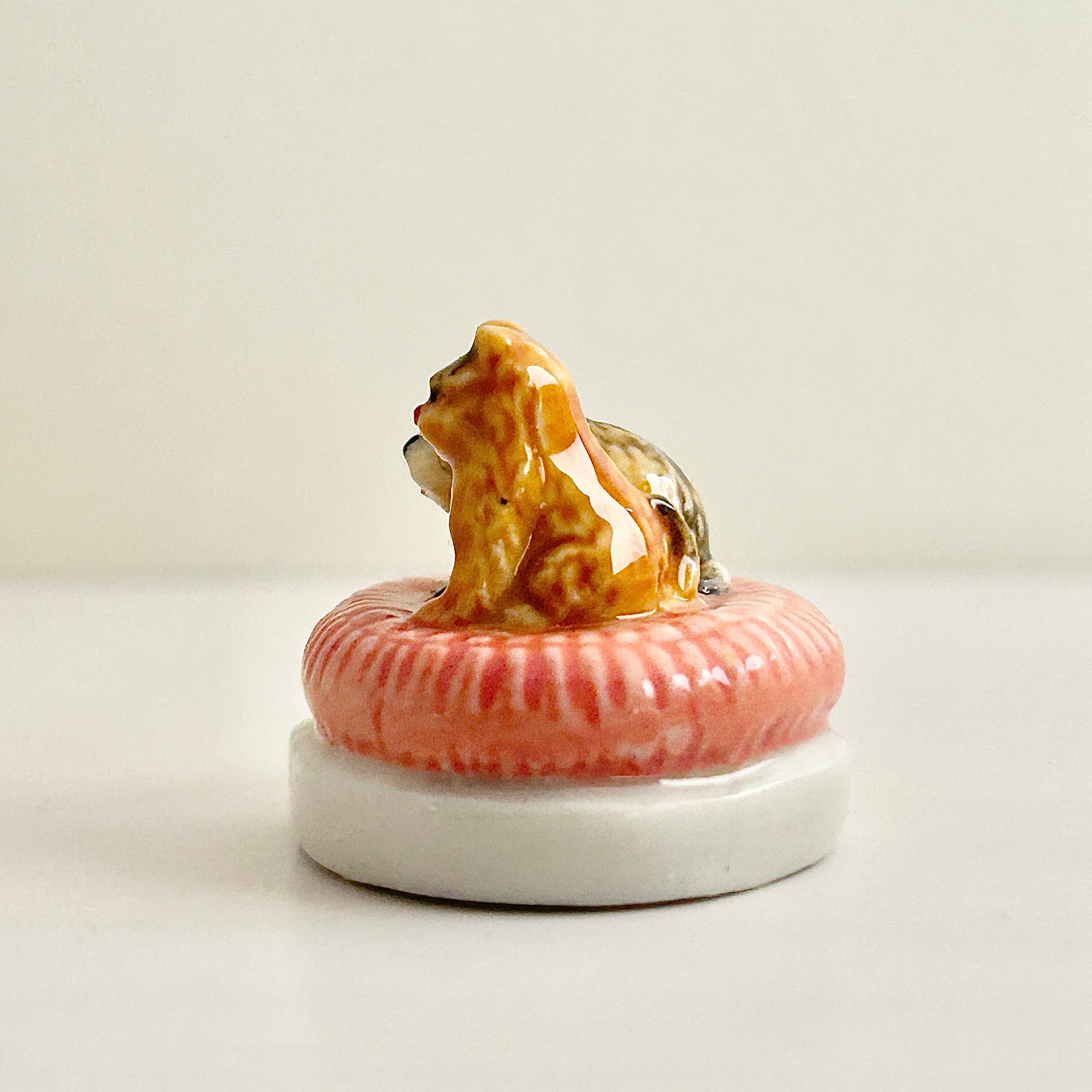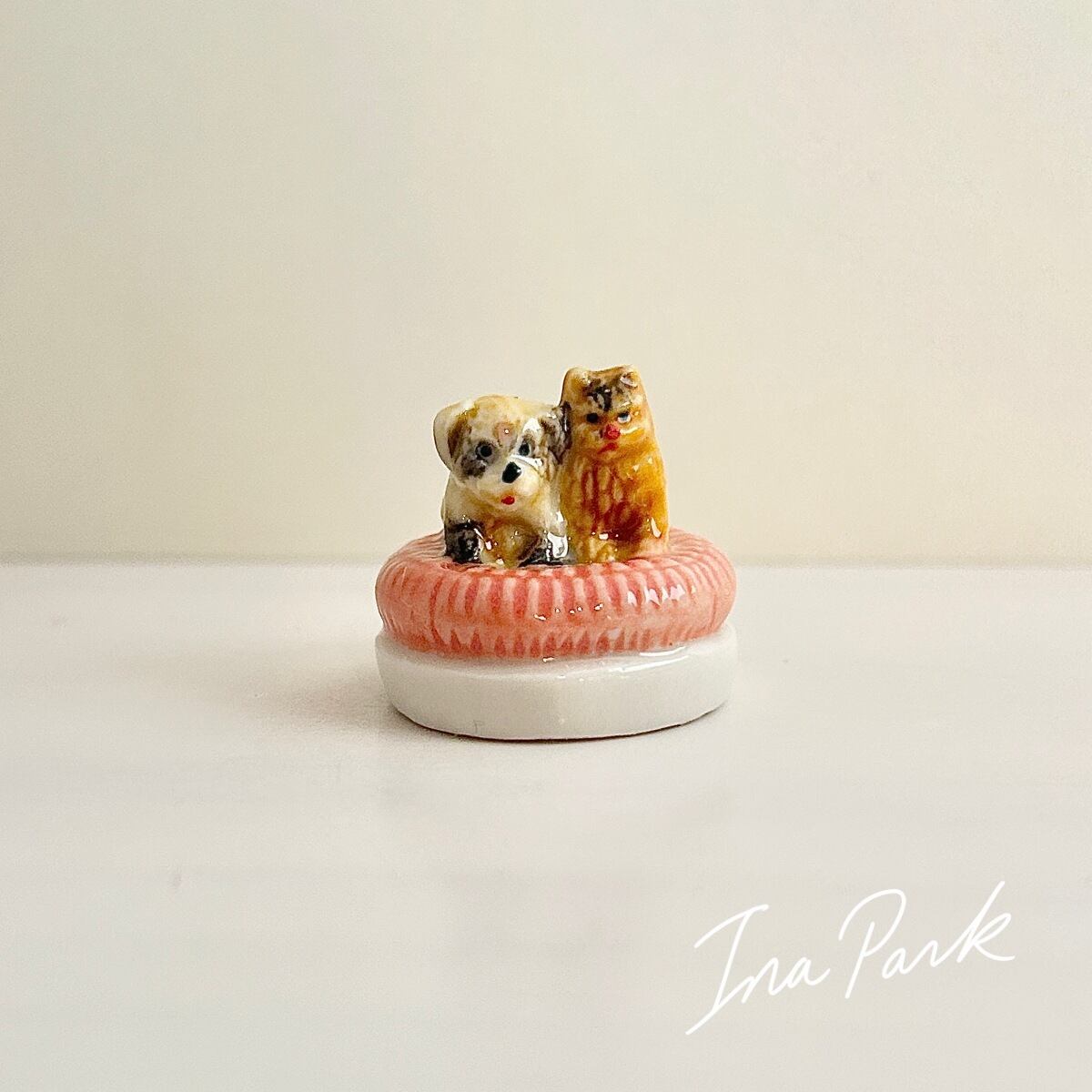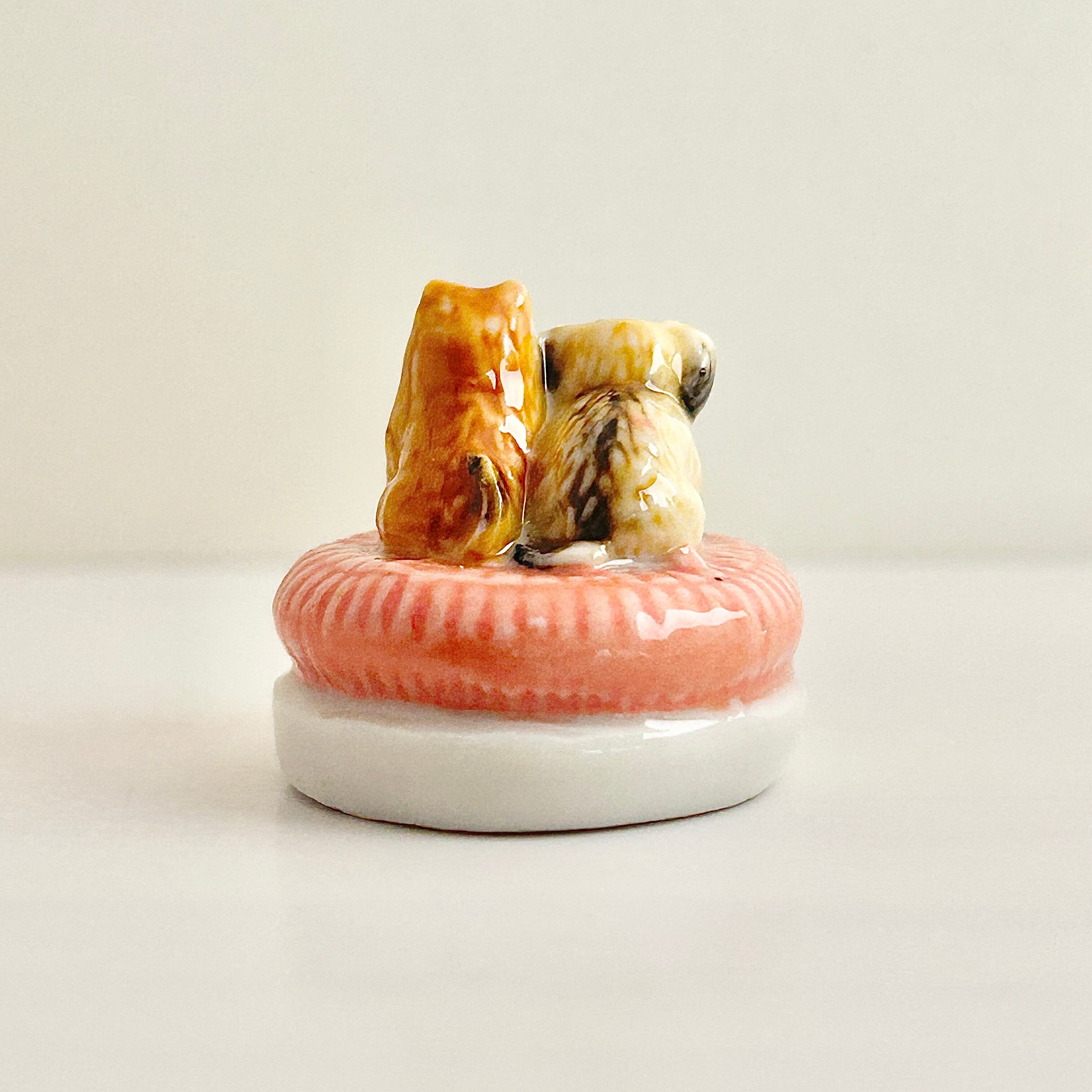 【レア】フランス製 子犬と子猫のフェーヴ ねこ フェーブ ミニチュア 陶器 雑貨 インテリア