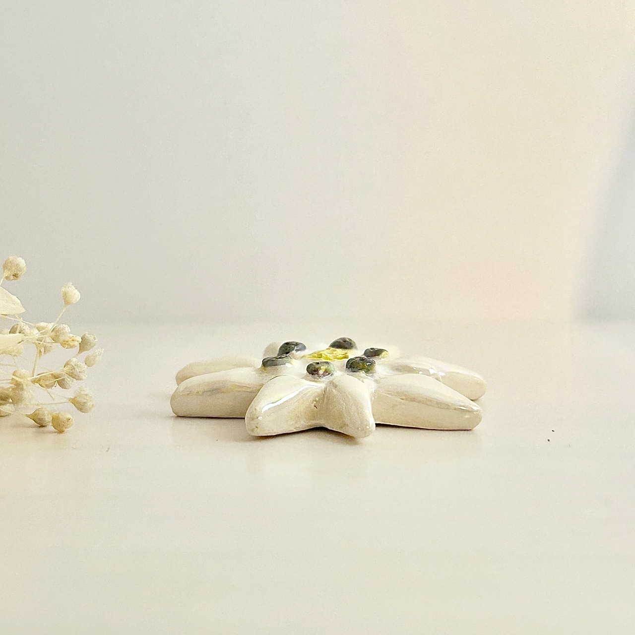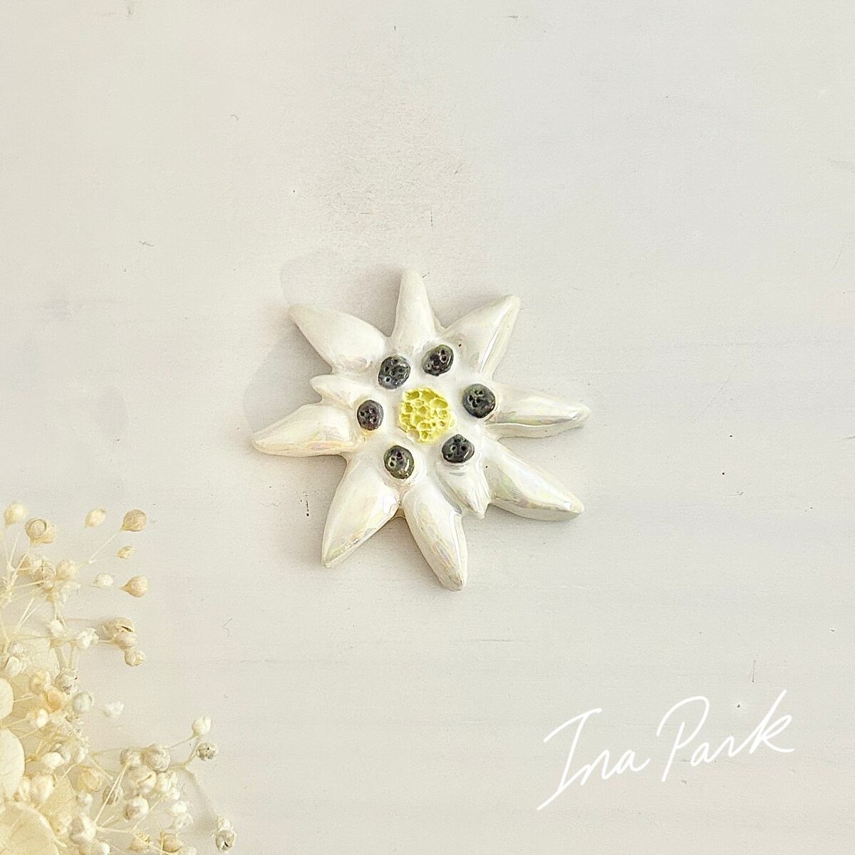 こちらのエーデルワイスの花だけパール加工がされています。