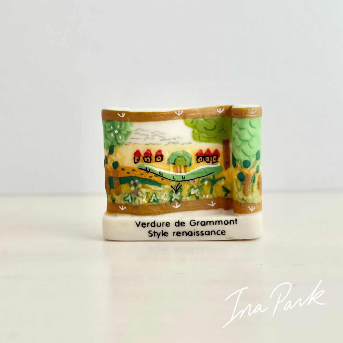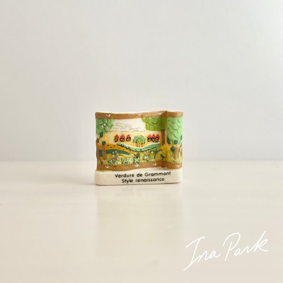 2006フランス製 古のタペストリーのフェーヴ グラモンの緑樹 フェーブ ミニチュア 陶器 雑貨 置物