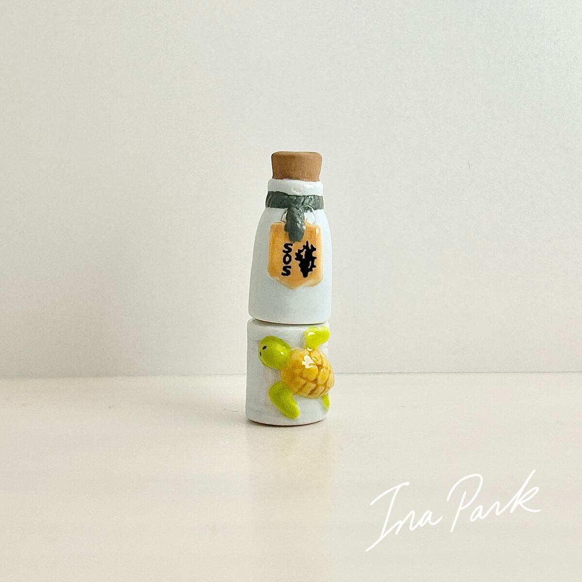 フランス製 フェーヴ ウミガメボトル 地球から届いたSOS フェーブ ミニチュア 陶器 雑貨