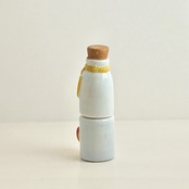栓付きの小瓶のかたちに、数の少ない動物や自然、電気や水といったのモチーフが立体的にあしらわれています。開けることができ、中に入っている紙にはボトルのモチーフと連動したリサイクルや自然保護に関するメッセージが描かれています。