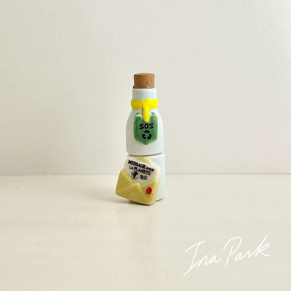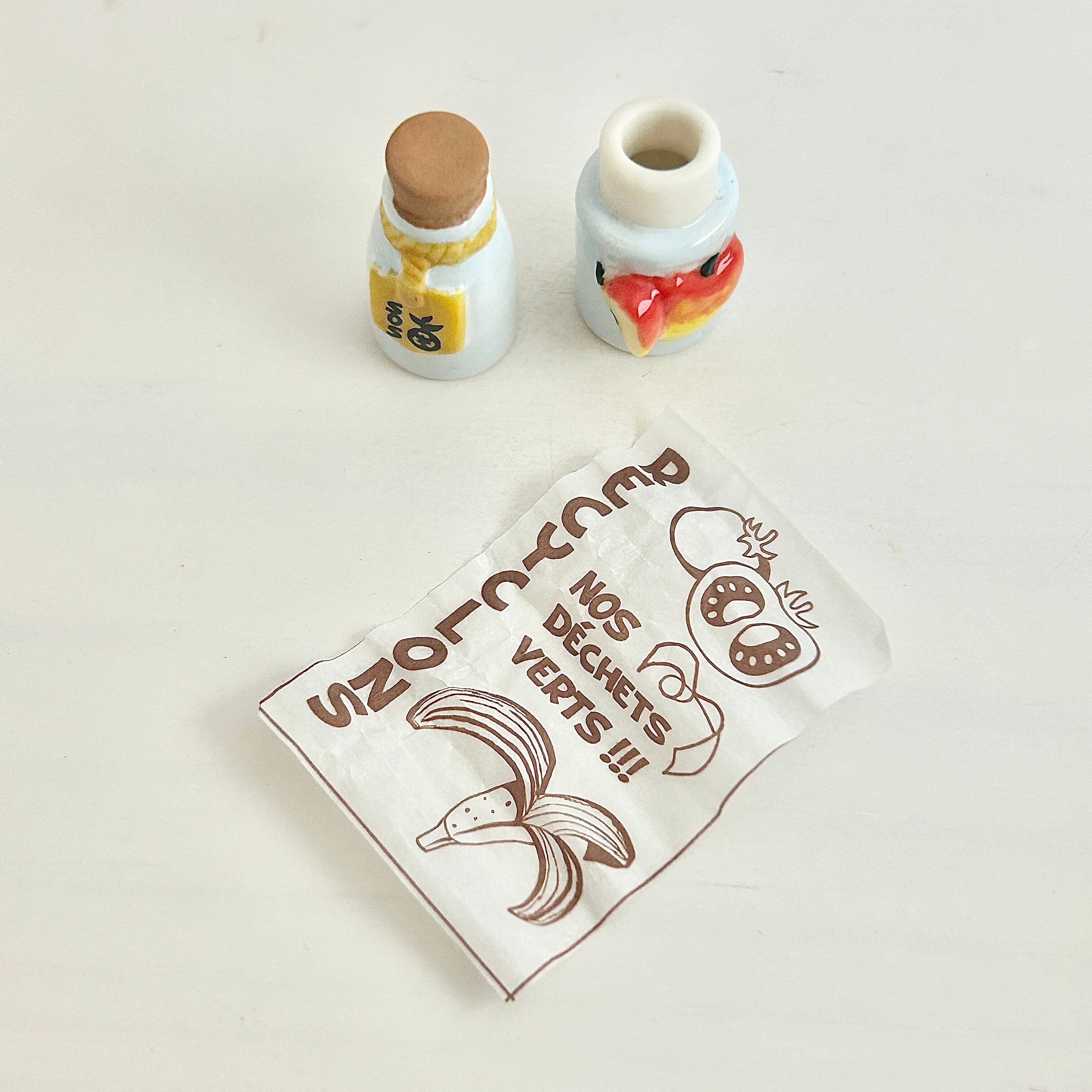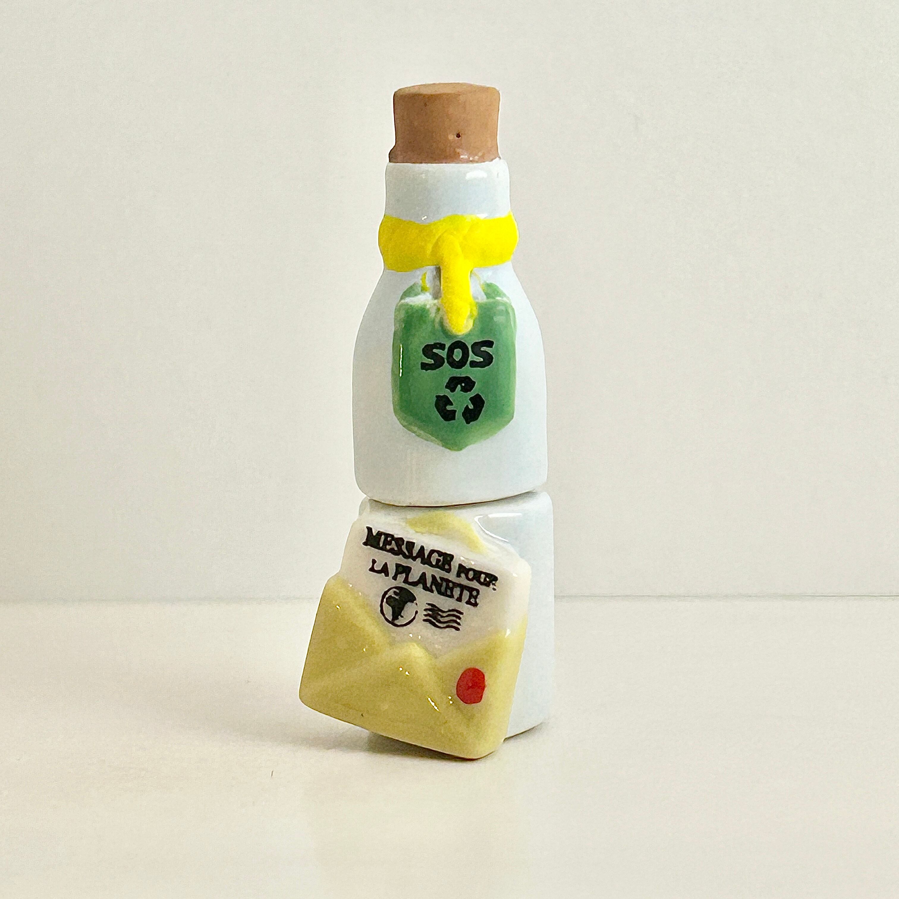 フランス製 フェーヴ 手紙ボトル 地球から届いたSOSボトル フェーブ ミニチュア 陶器 雑貨