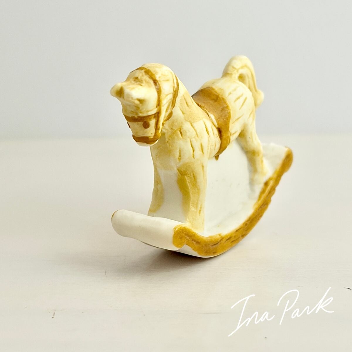 フランス製 白い木馬のフェーヴ フェーブ ミニチュア 陶器 雑貨 置物