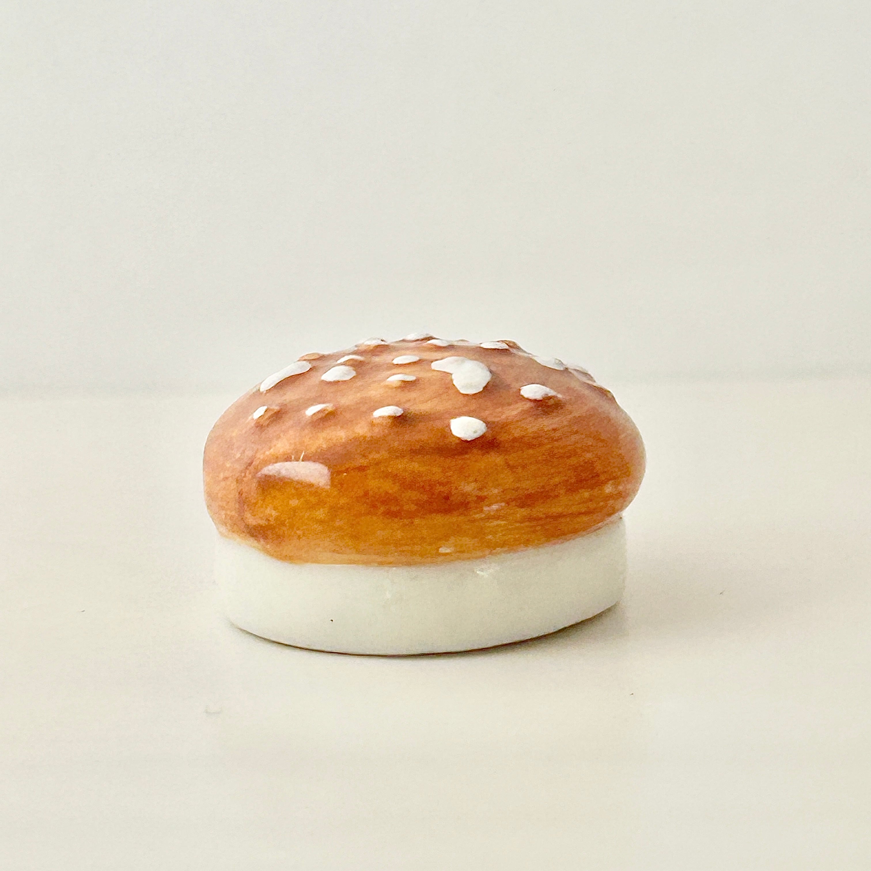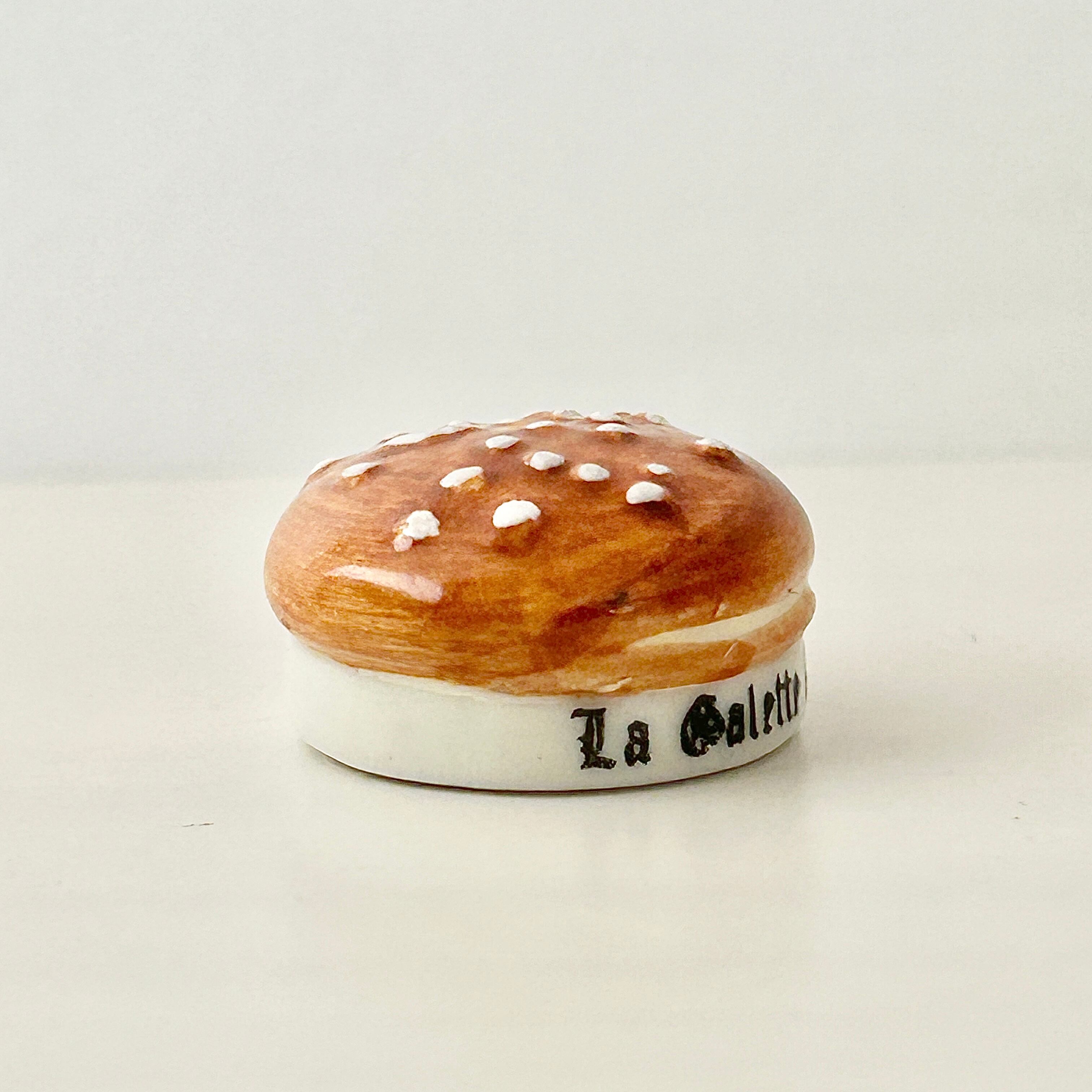 フェーブのデザインは、同店のスペシャリテと思われる小さなガレット・ブリオッシュのミニチュア。表面には砂糖の粒があしらわれ、焼き色の再現もリアル。とても美味しいと評判のパン屋/パティスリーさんだったようです。