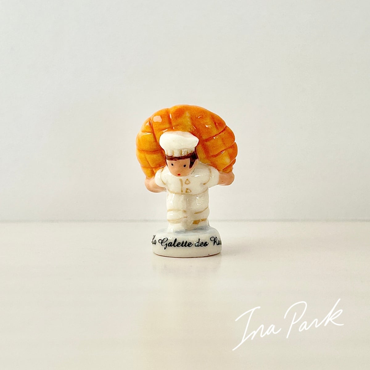 フランス製 ガレットを運ぶ職人さんのフェーヴ フェーブ ミニチュア 陶器 雑貨 置物
