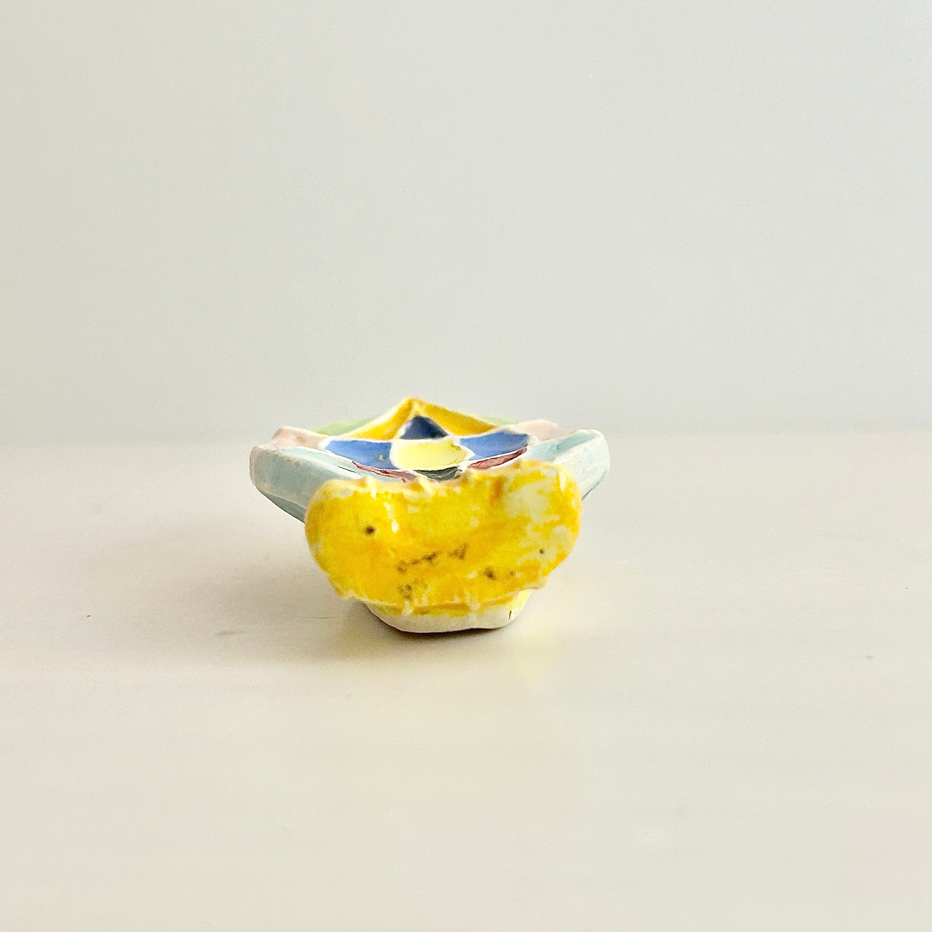 仕切るように掘られており、そこに色を乗せて釉薬が流し込まれています。