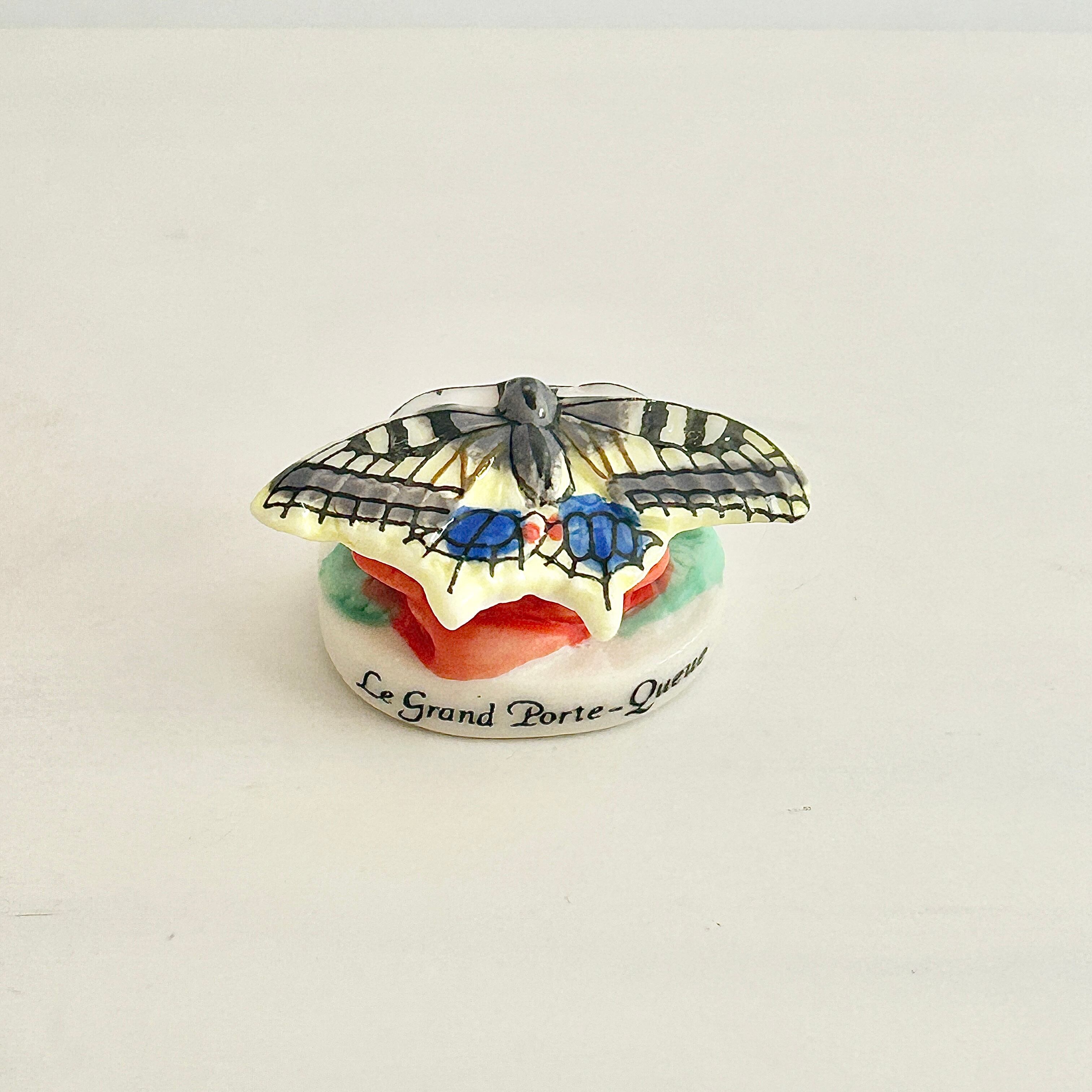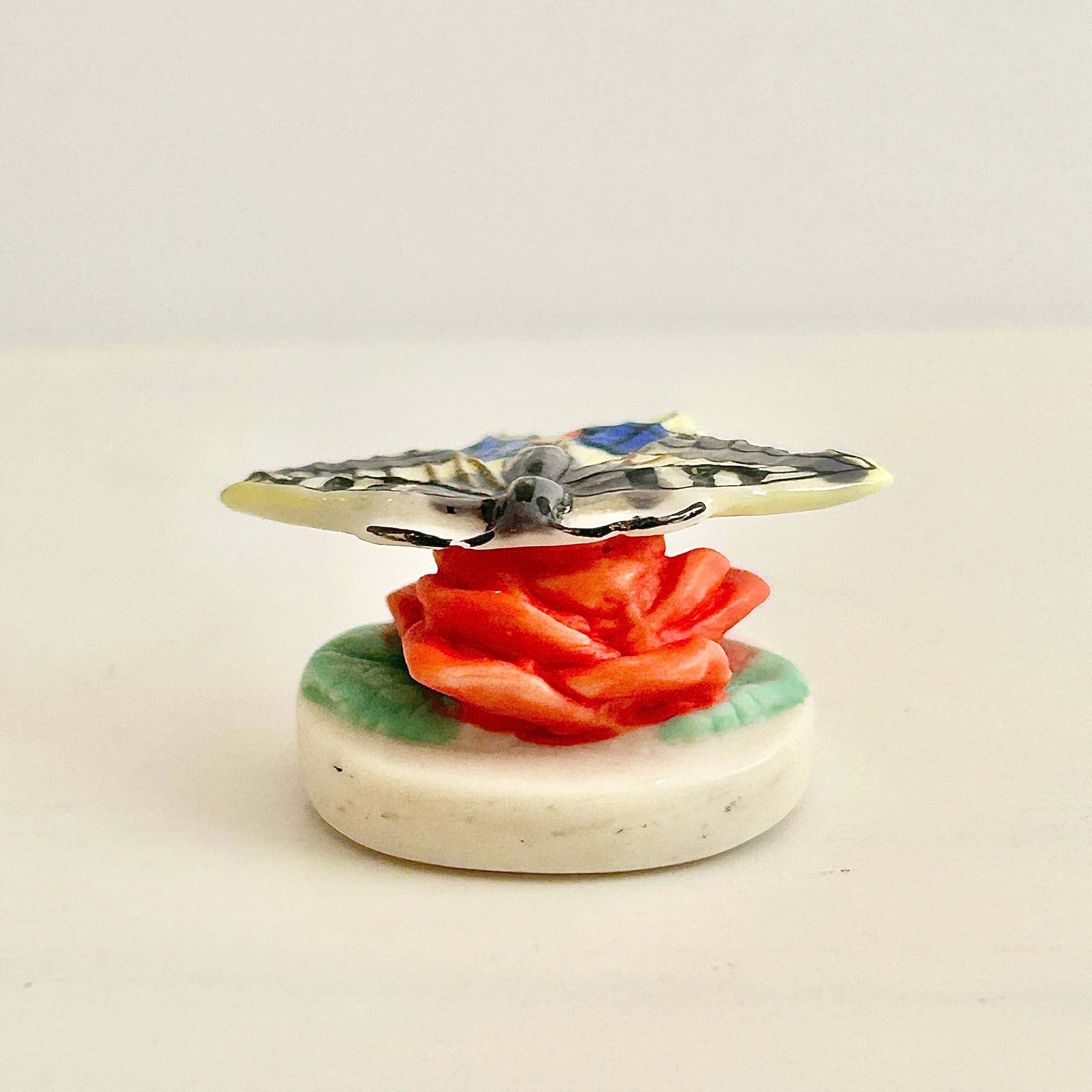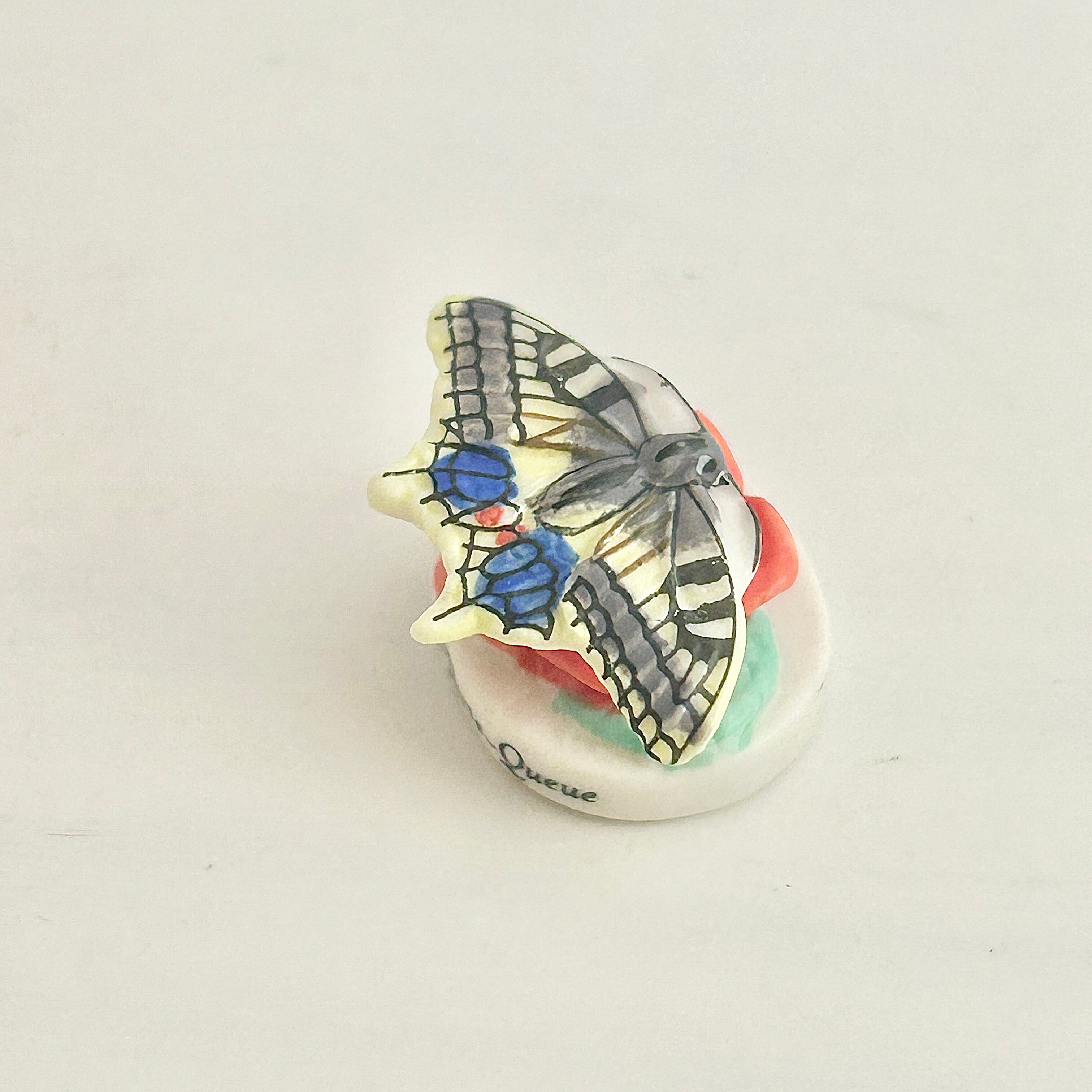 薔薇にとまるアゲハ蝶のフェーヴ フェーブ 動物 フランス製ミニチュア陶器 雑貨 置物