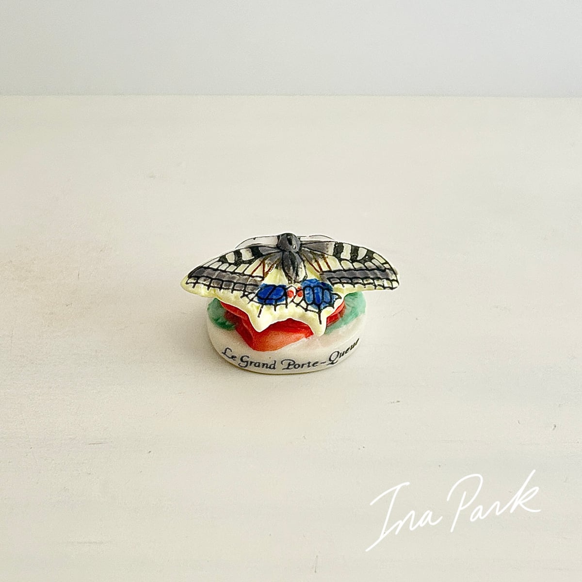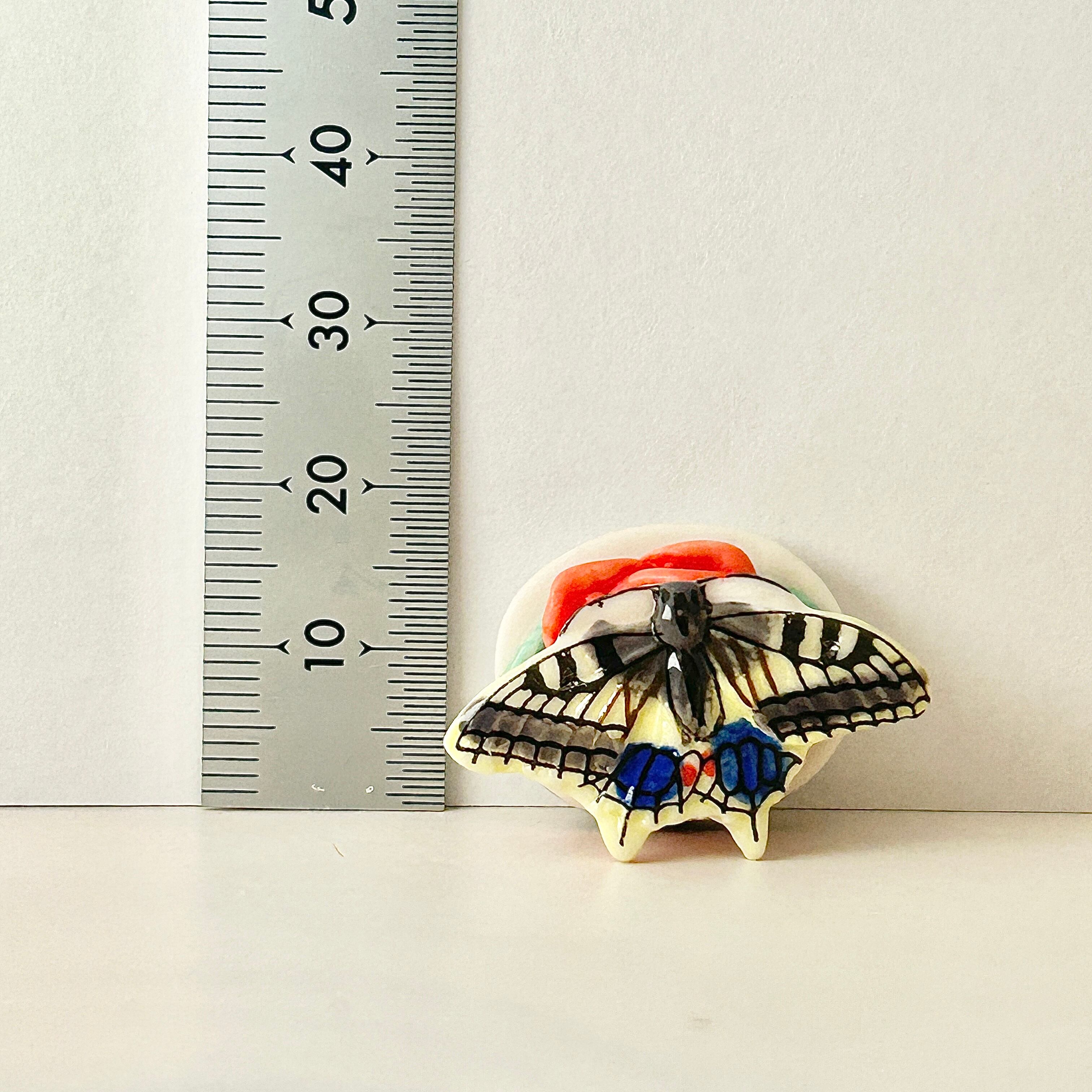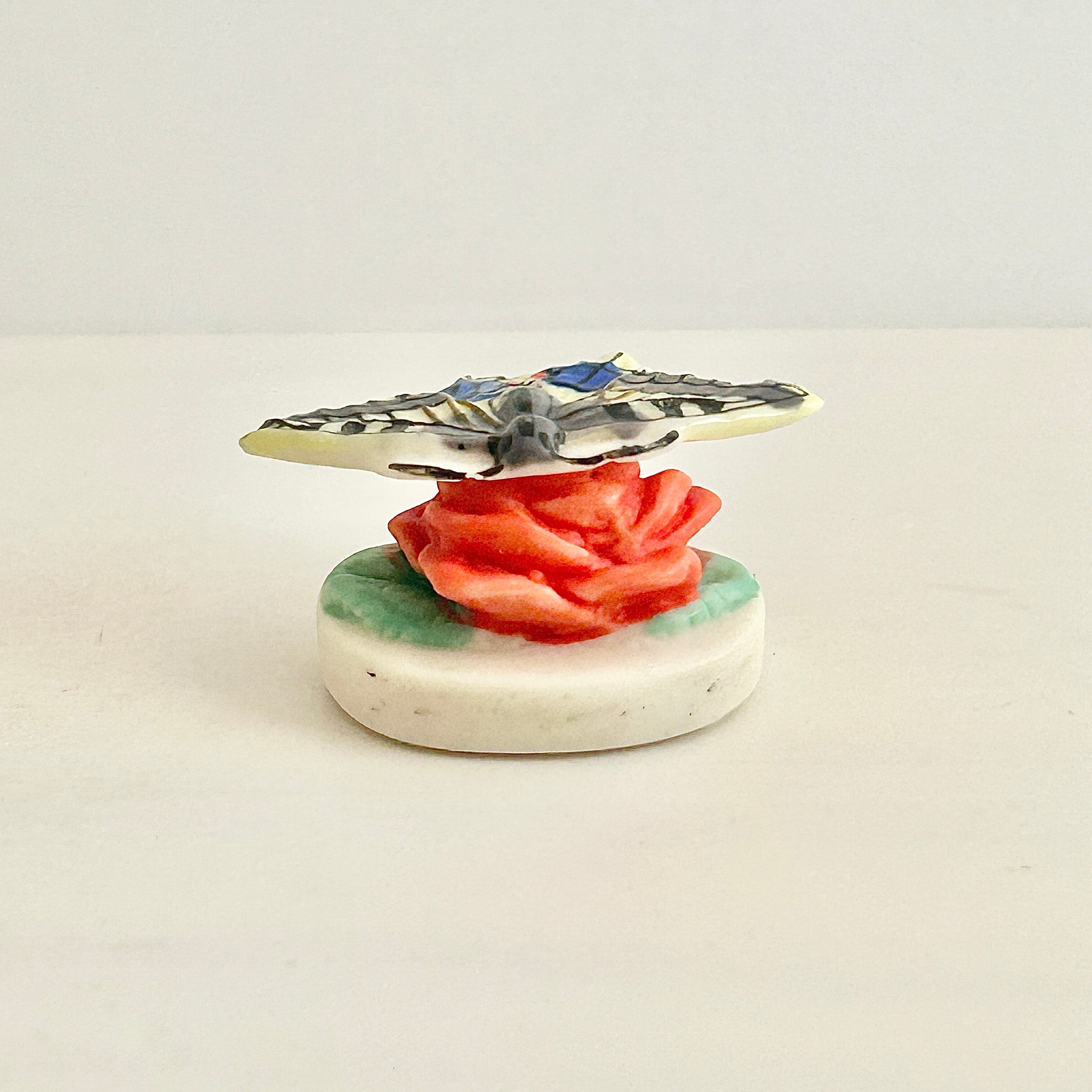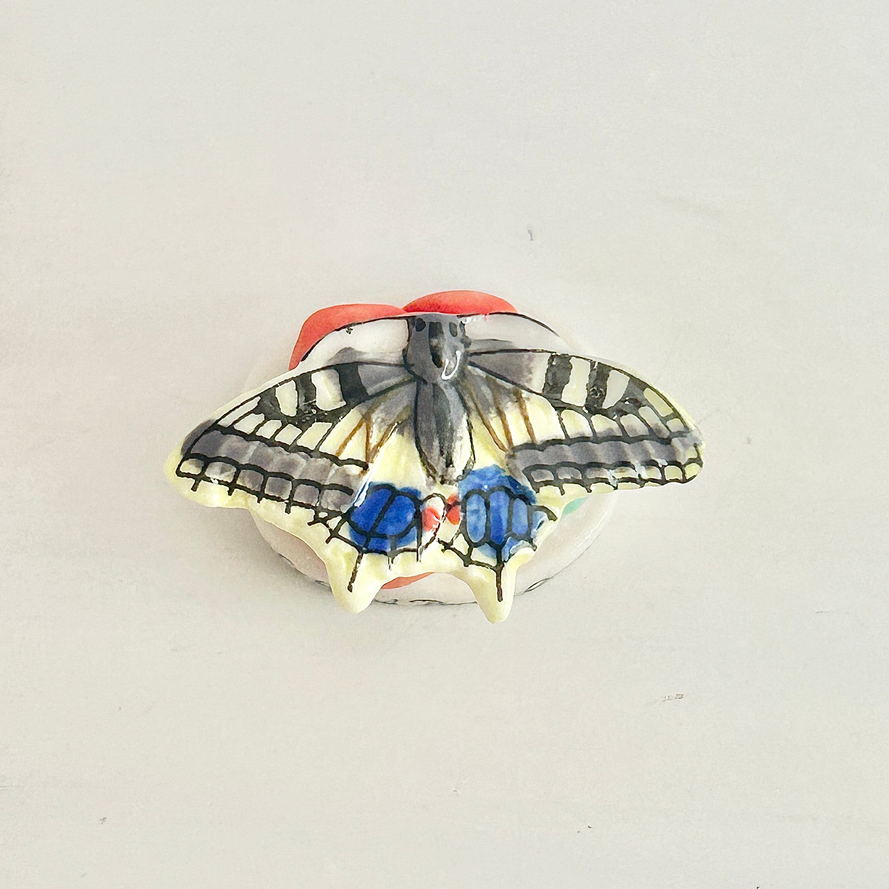 薔薇にとまるアゲハ蝶のフェーヴ フェーブ 動物 フランス製ミニチュア陶器 雑貨 置物