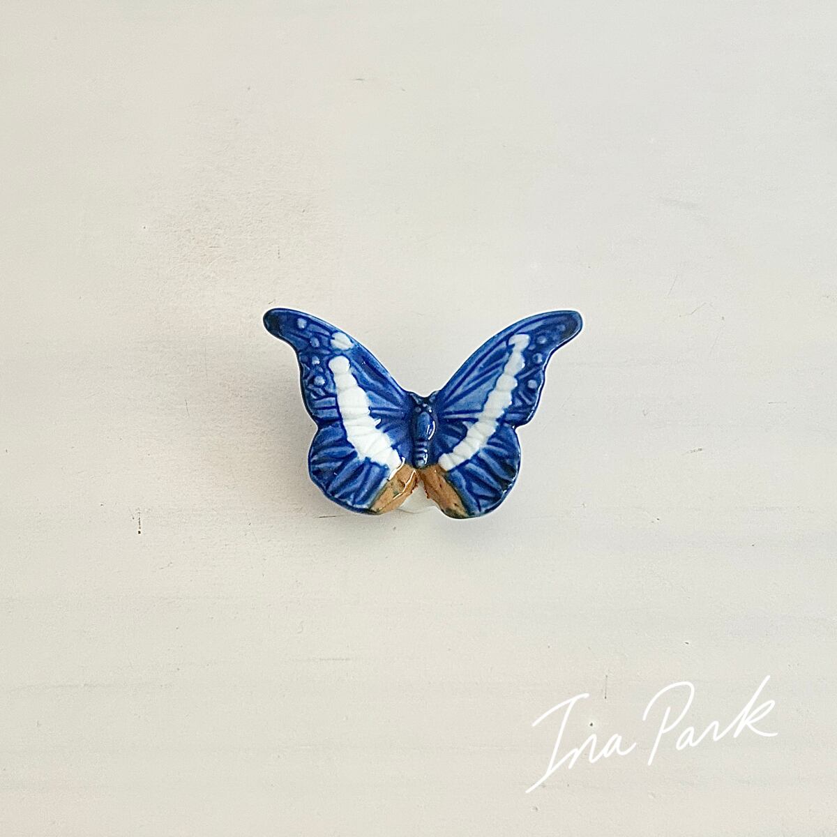 ヘレナモルフォ蝶のフェーヴ フェーブ 動物 フランス製ミニチュア陶器 雑貨 置物