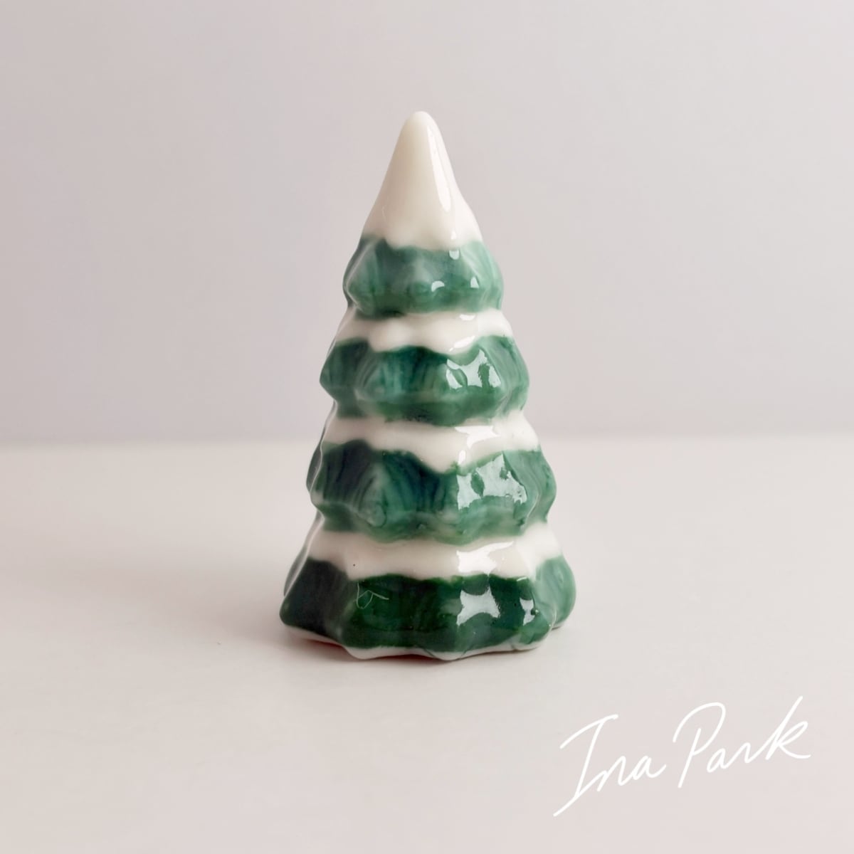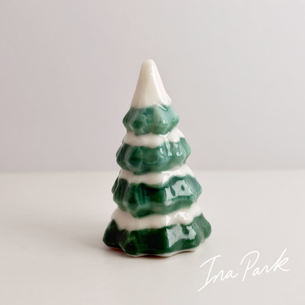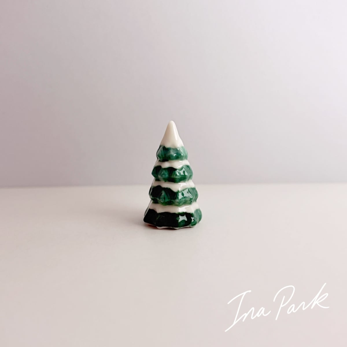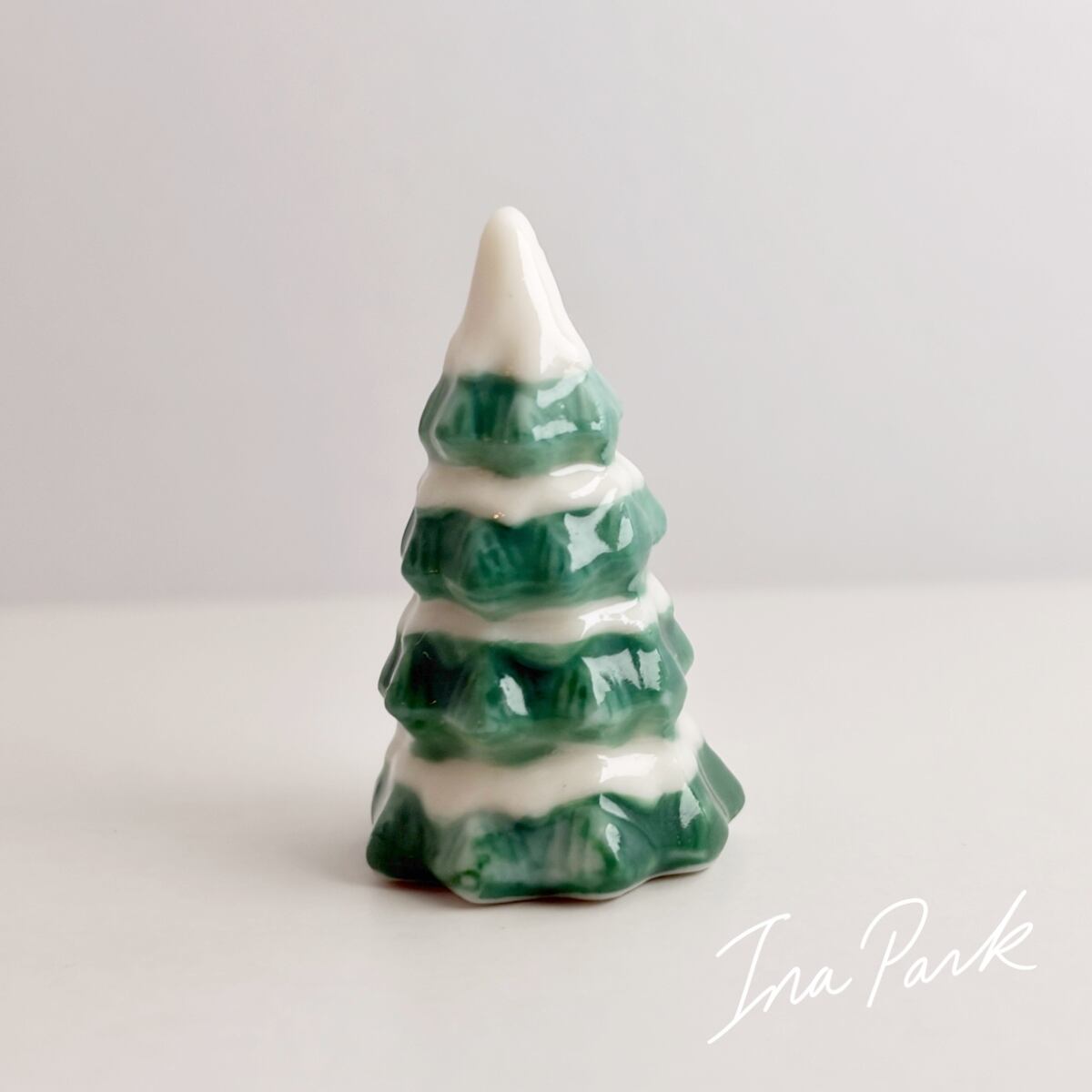 ピカール 雪の積もるツリーのフェーブ 木 フランス製 ミニチュア雑貨 陶器の飾り