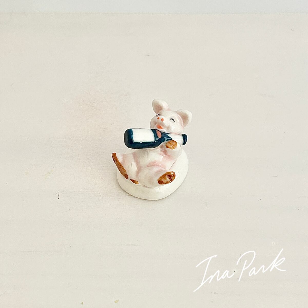 ワインで酔っ払うブタのフェーブ クリスマスのフェーヴ お菓子 パン フランス製 ミニチュア雑貨 陶器の飾り