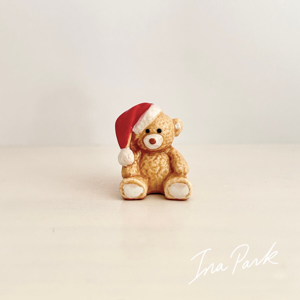 サンタのテディベア フェーブ クリスマスのフェーヴ フランス製 ミニチュア雑貨 陶器の飾り