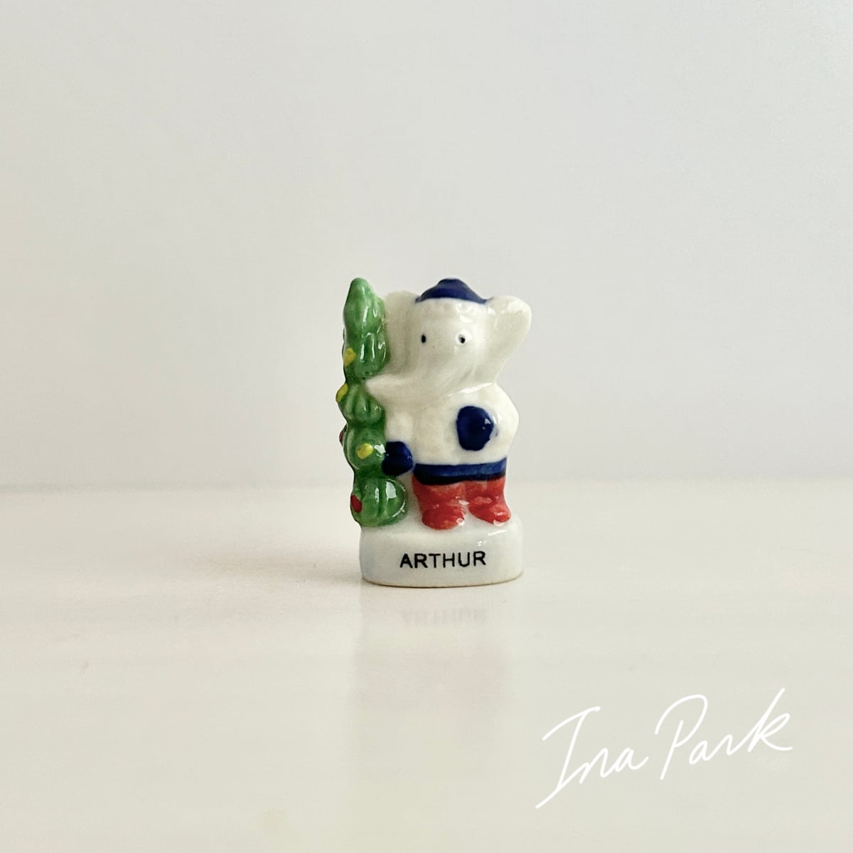 ゾウのババール アルトゥールとツリーのフェーブ クリスマスのフェーヴ フランス製 ミニチュア雑貨 陶器の飾り