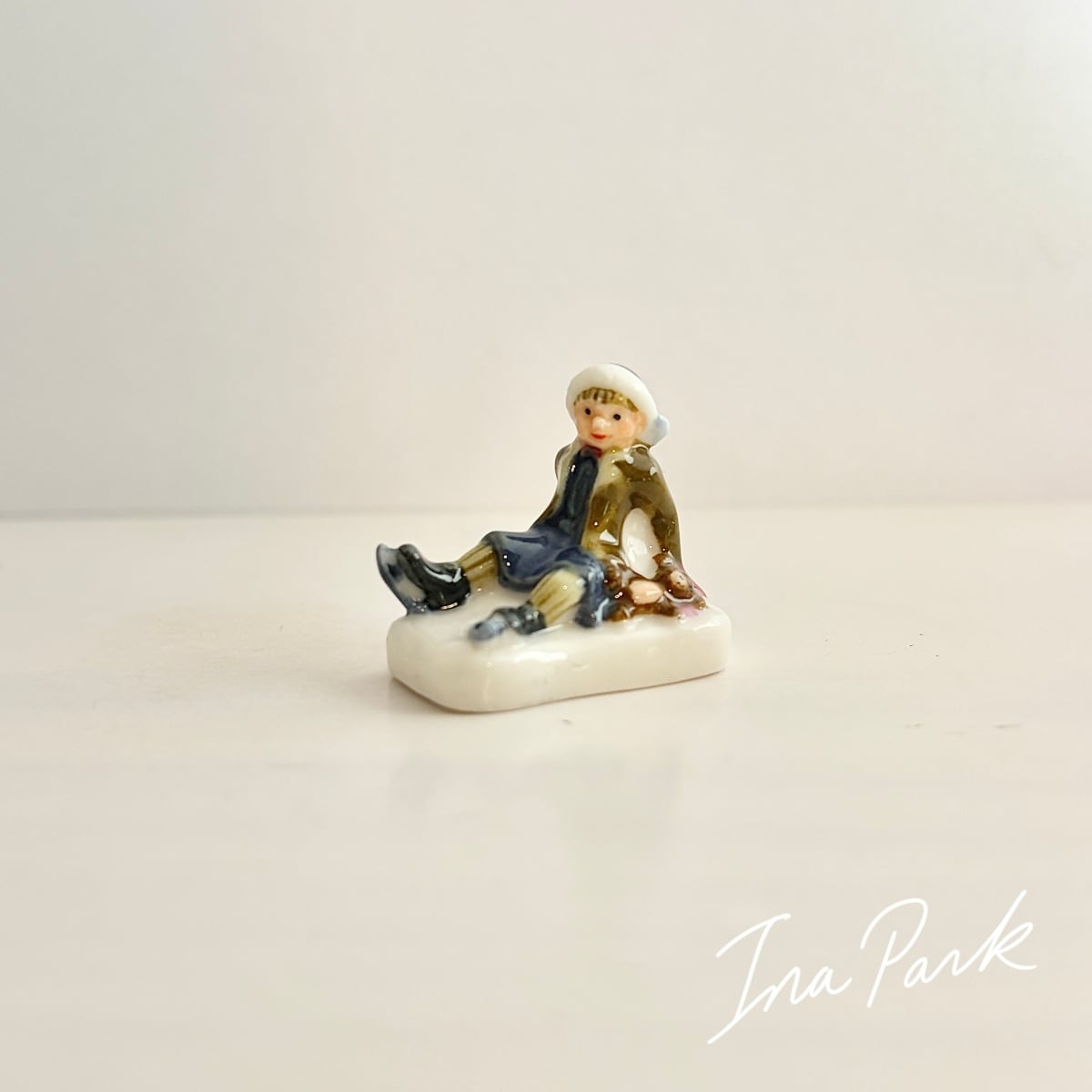 A・テラ・ヴェッキア 冬の遊び フェーヴ フェーブ フランス製 ミニチュア 陶器 雑貨