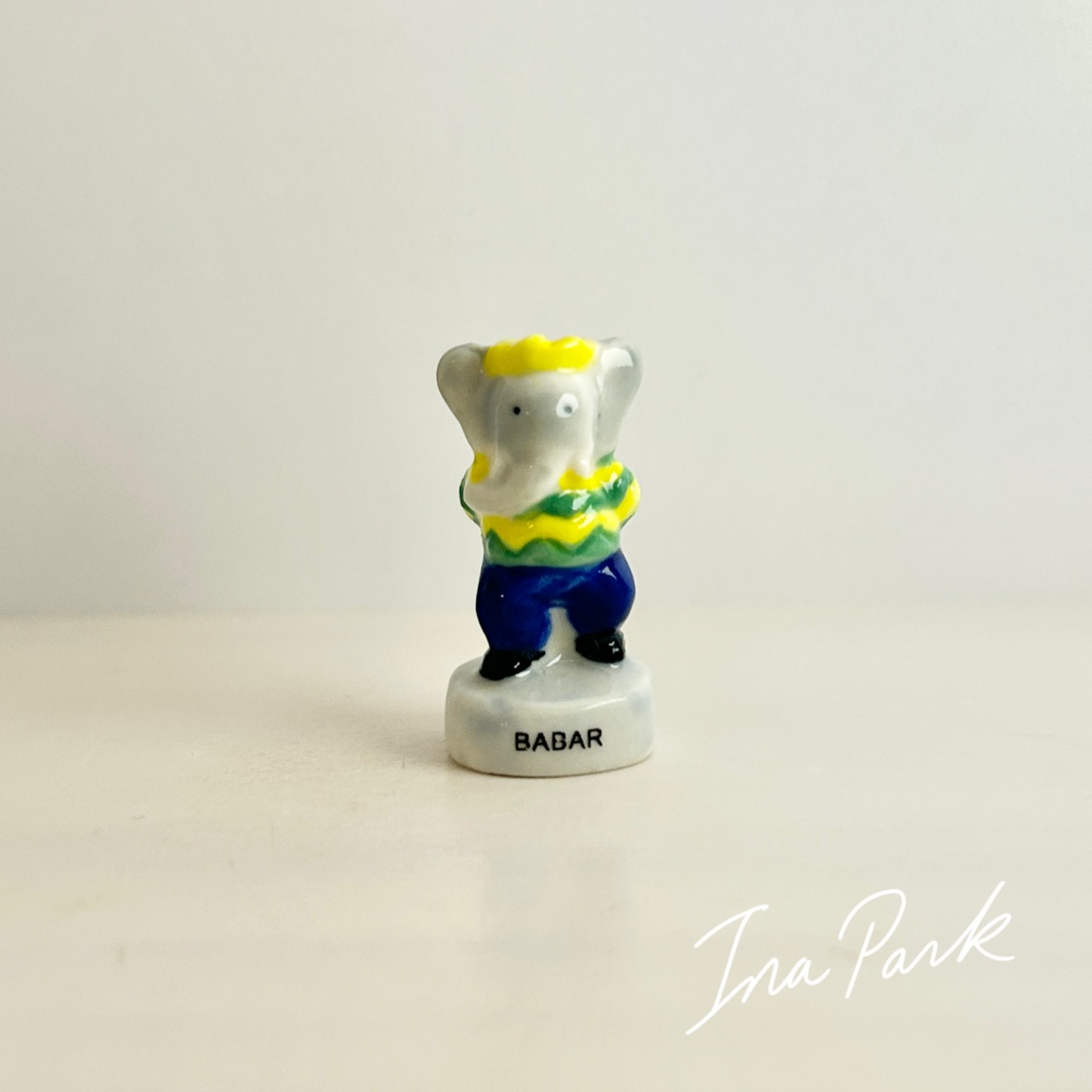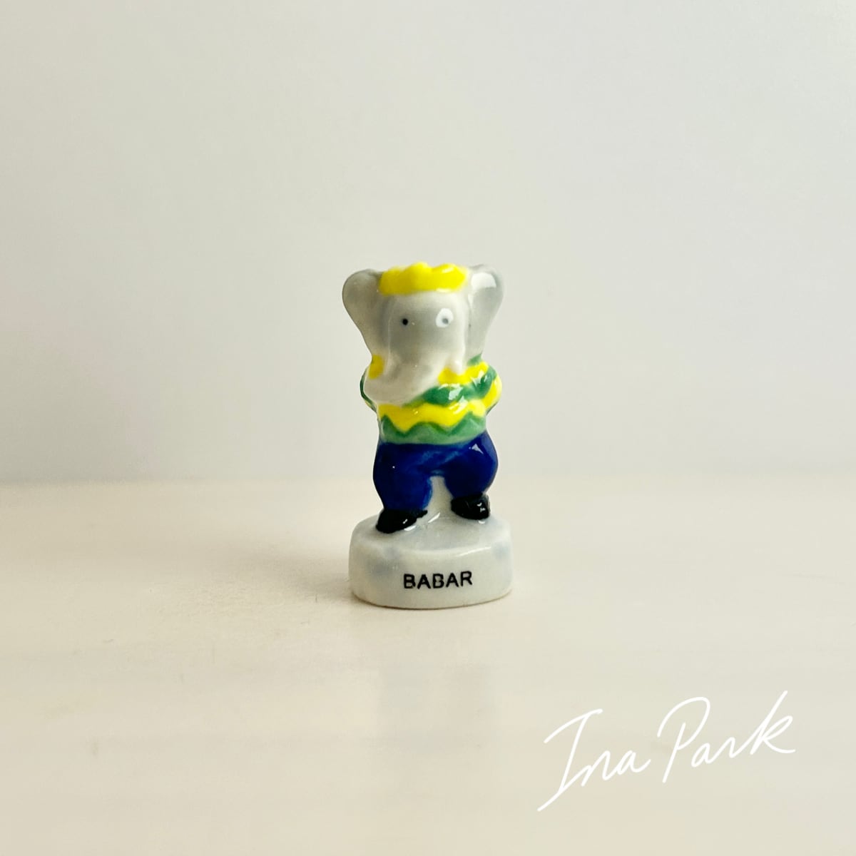 2005 フランス製 ゾウのババール 冬のフェーヴ フェーブ ミニチュア 陶器 雑貨 置物