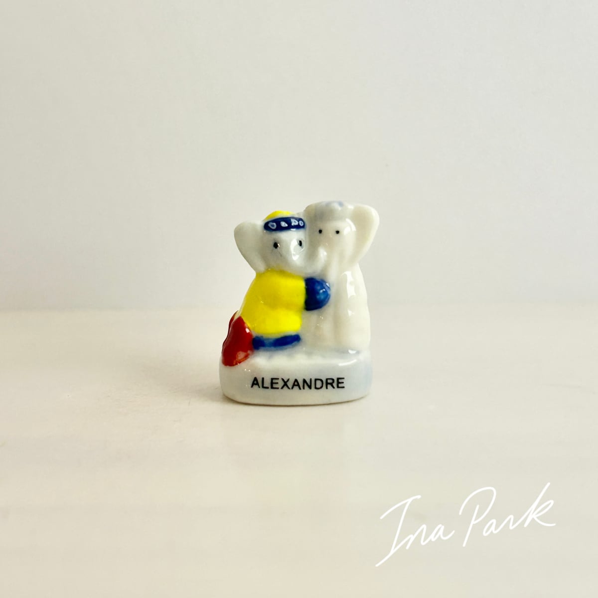 2005 フランス製 ゾウのババール 冬のフェーヴ フェーブ ミニチュア 陶器 雑貨 置物