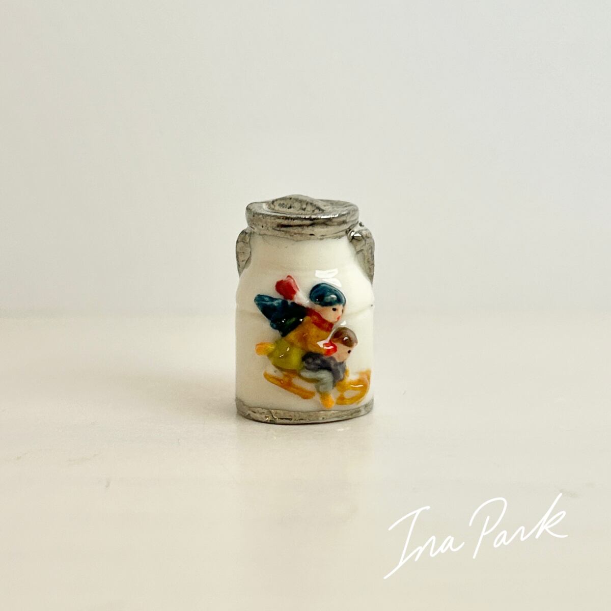【希少】A・テラ・ヴェッキア 冬のミルク缶 フェーヴ フェーブ フランス製 ミニチュア 陶器 雑貨