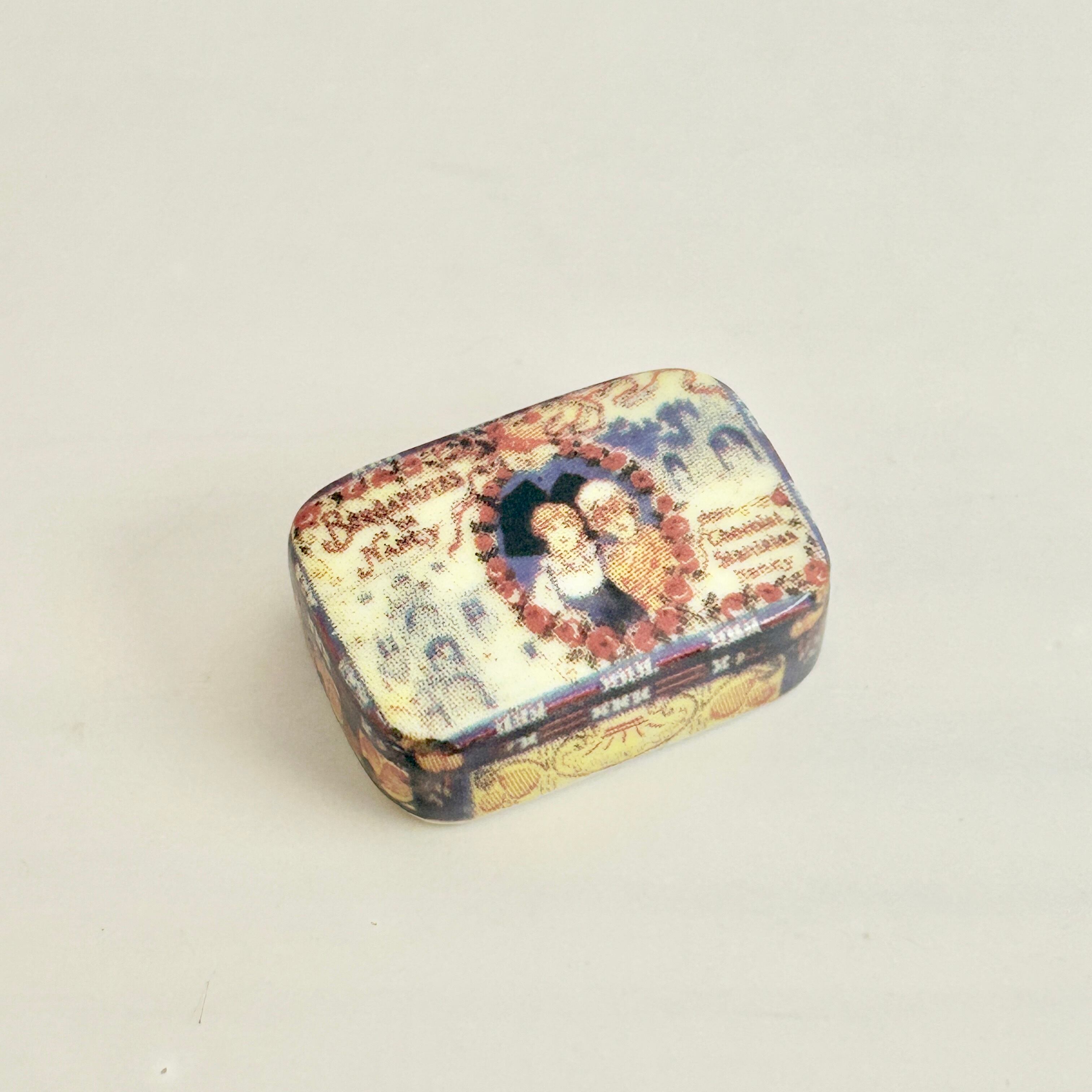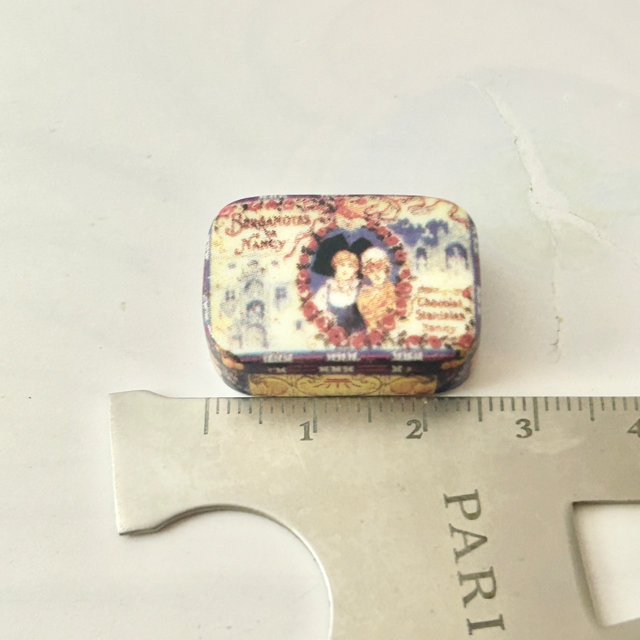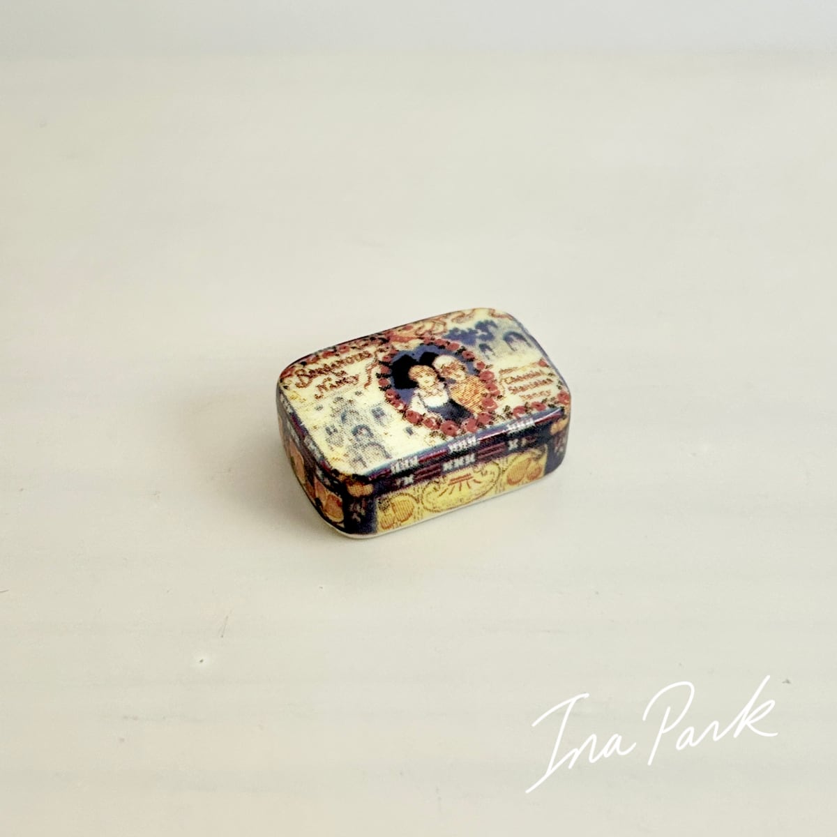 ビスケット缶・ショコラ缶・薬箱など、当時存在した商品缶をイメージしていると思われます。