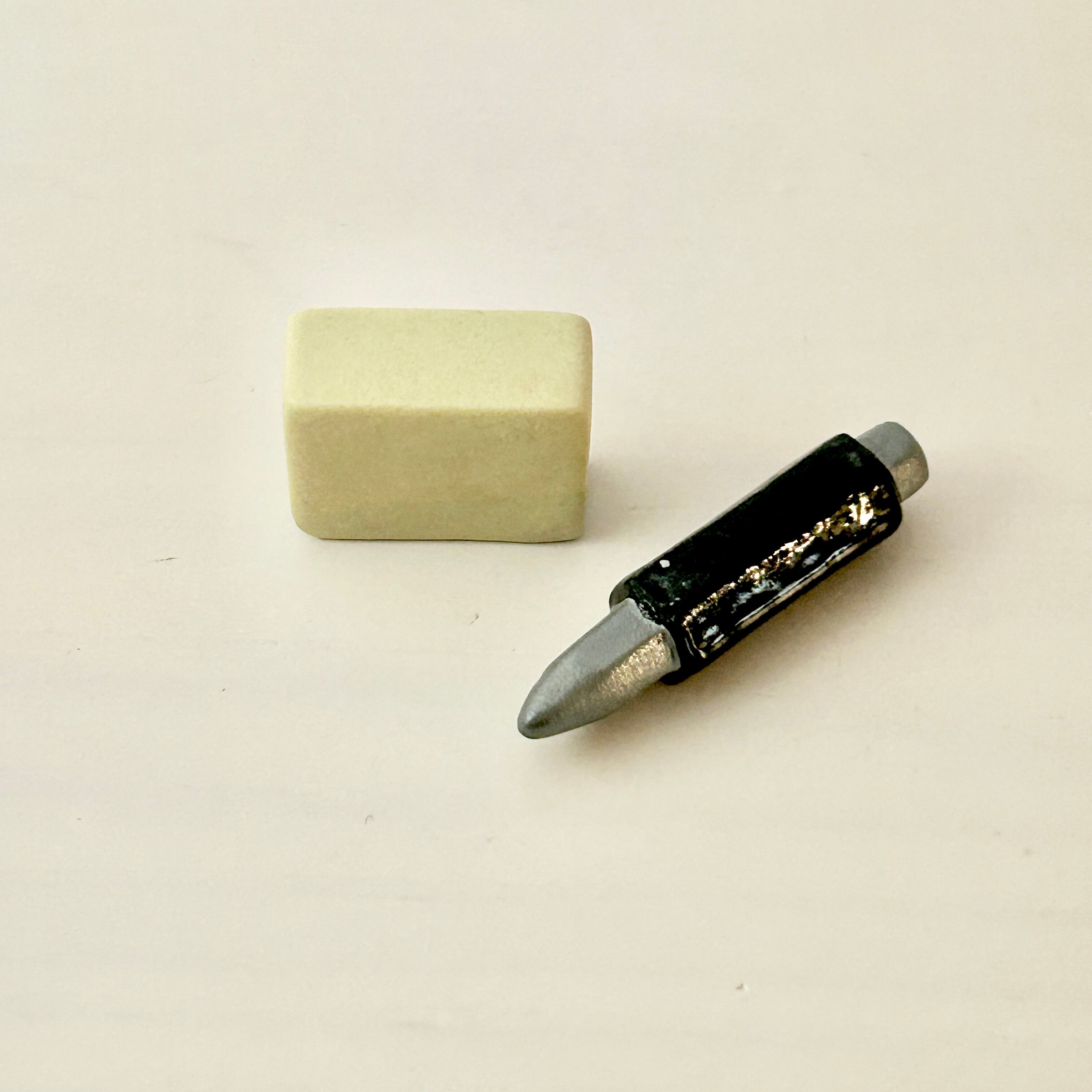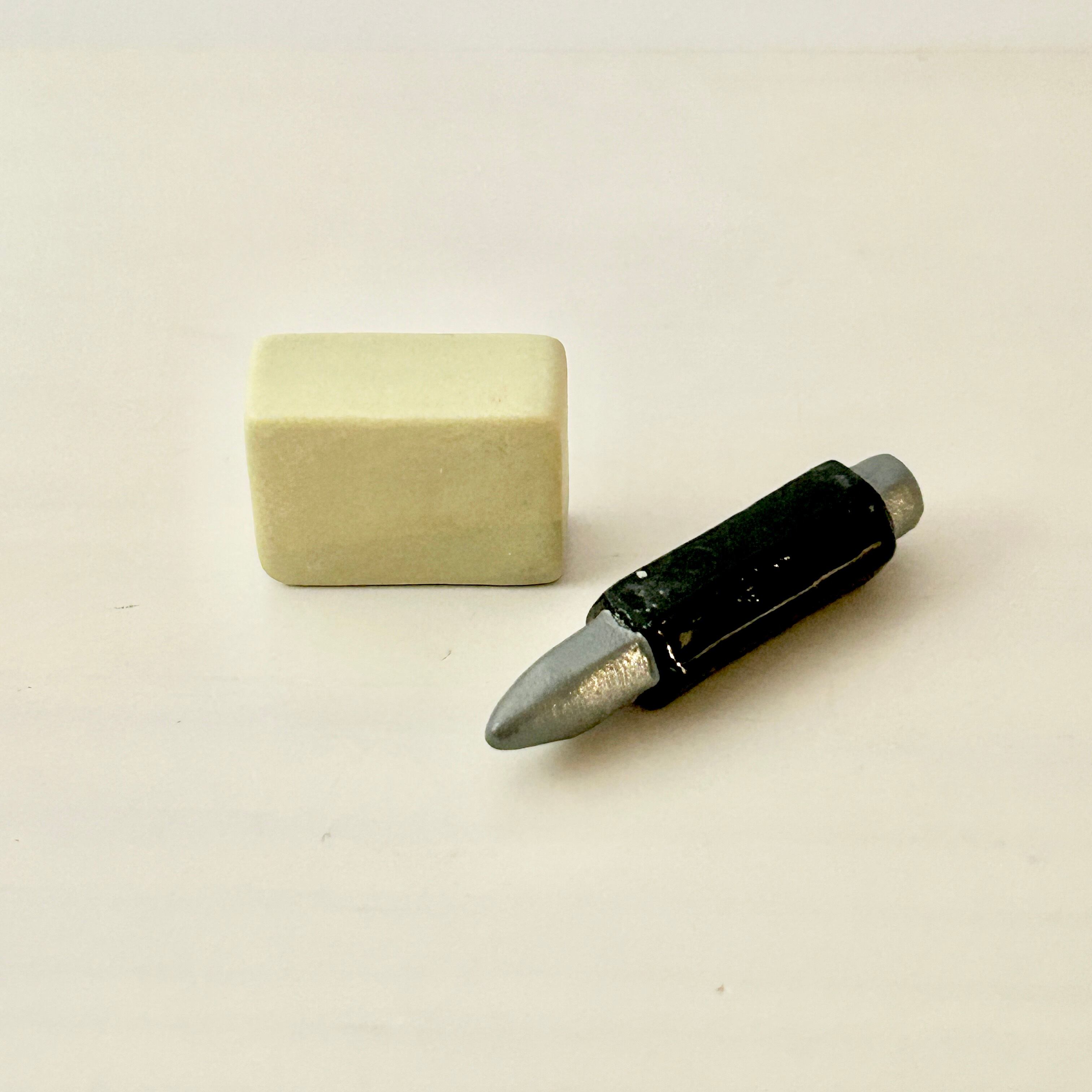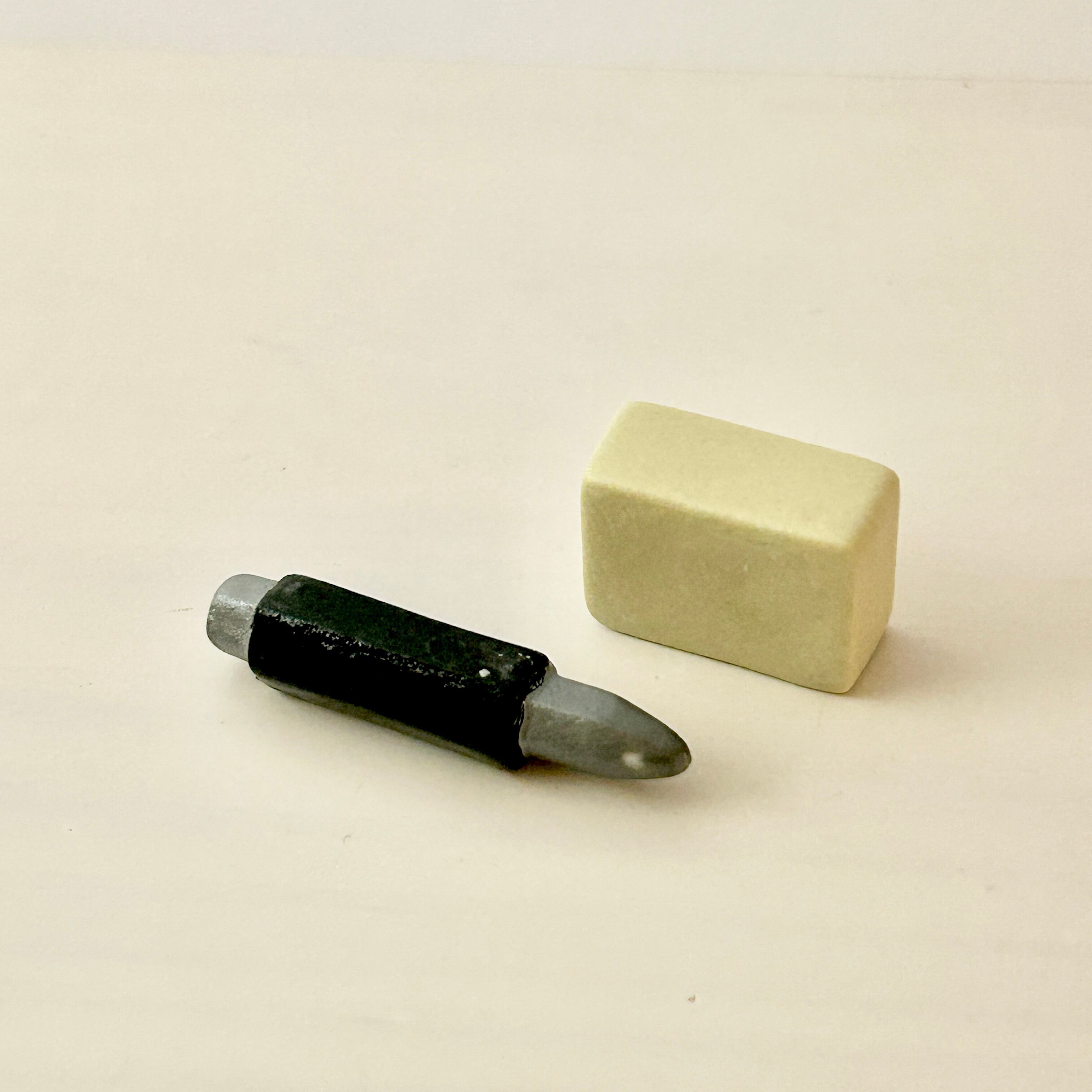 【新作】チャコール鉛筆とアーティスト消しゴム フェーヴ フェーブ 美術 フランス製 ミニチュア陶器 雑貨