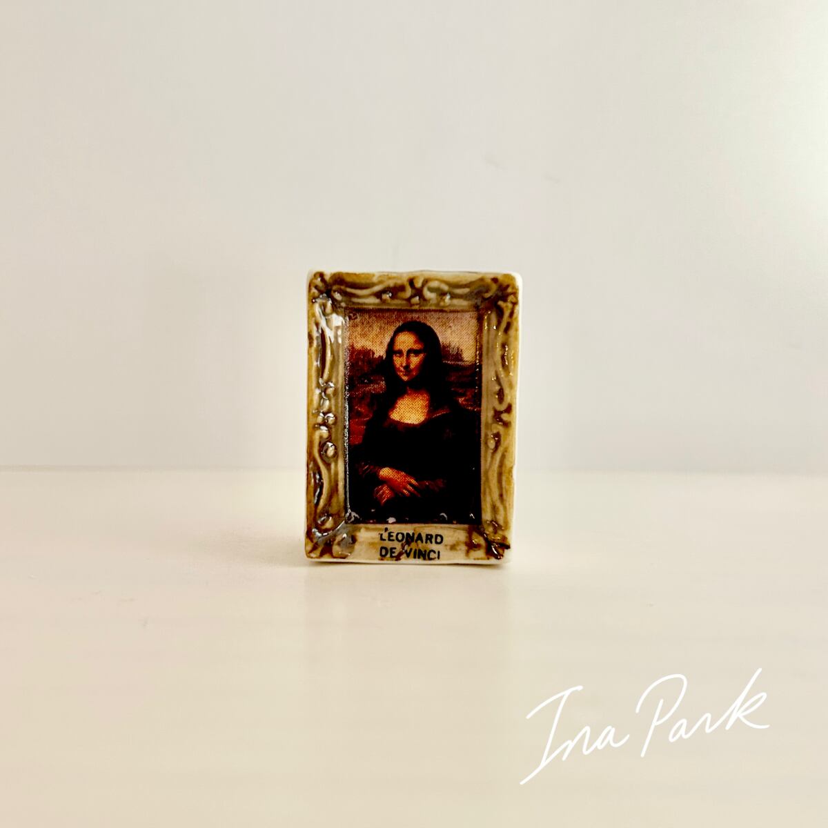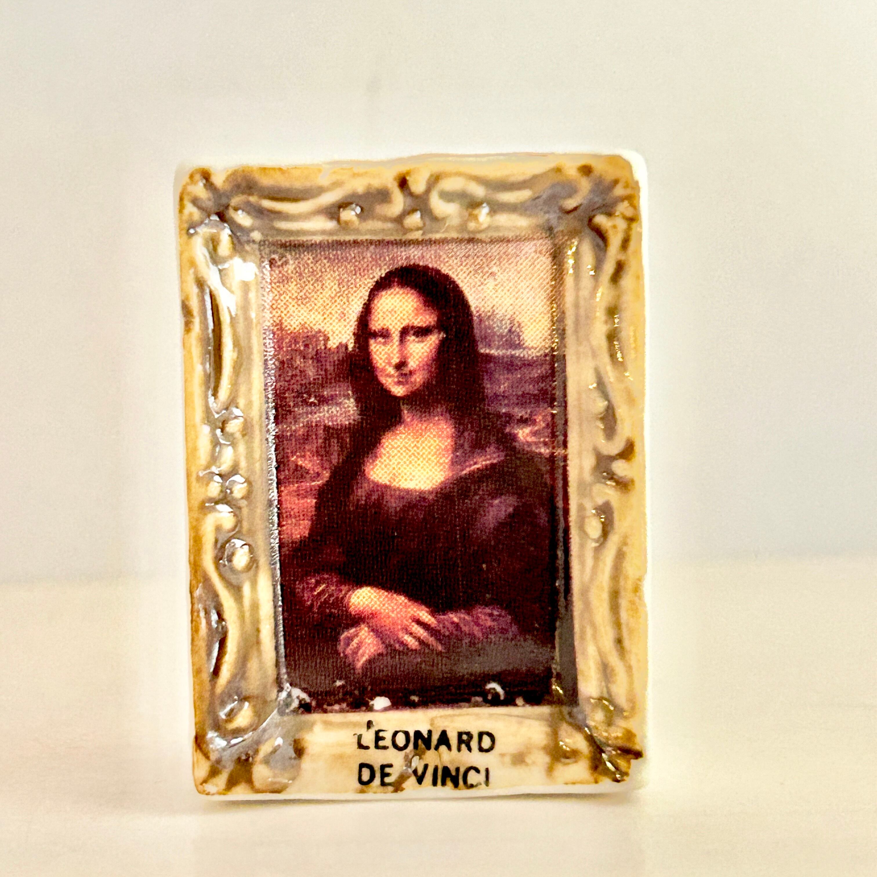 1996ヴィンテージ ダ・ヴィンチ モナ・リザ 名画のフェーヴ フランス製 フェーブ ミニチュア 陶器 雑貨 芸術 絵画