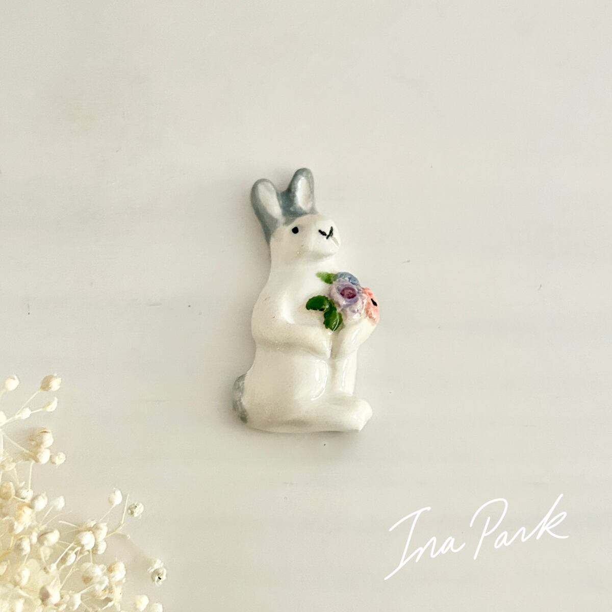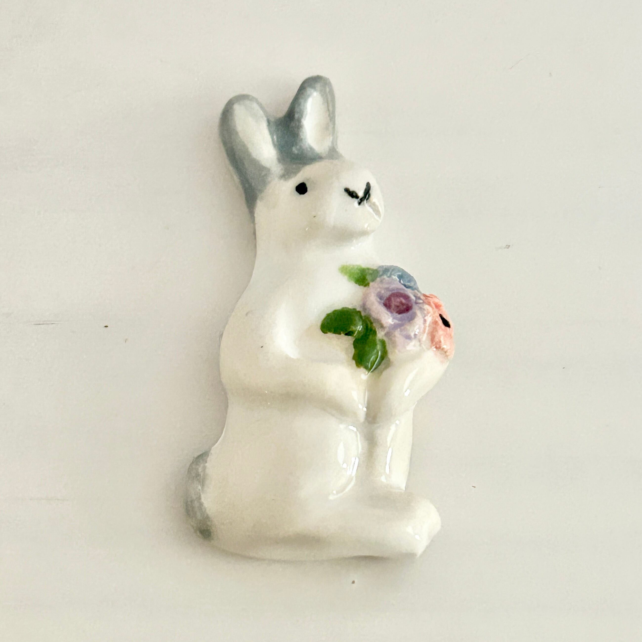 【新作】2025 エリック・エ・ジル 花束を持つうさぎのフェーヴ フェーブ フランス製 工房 陶器
