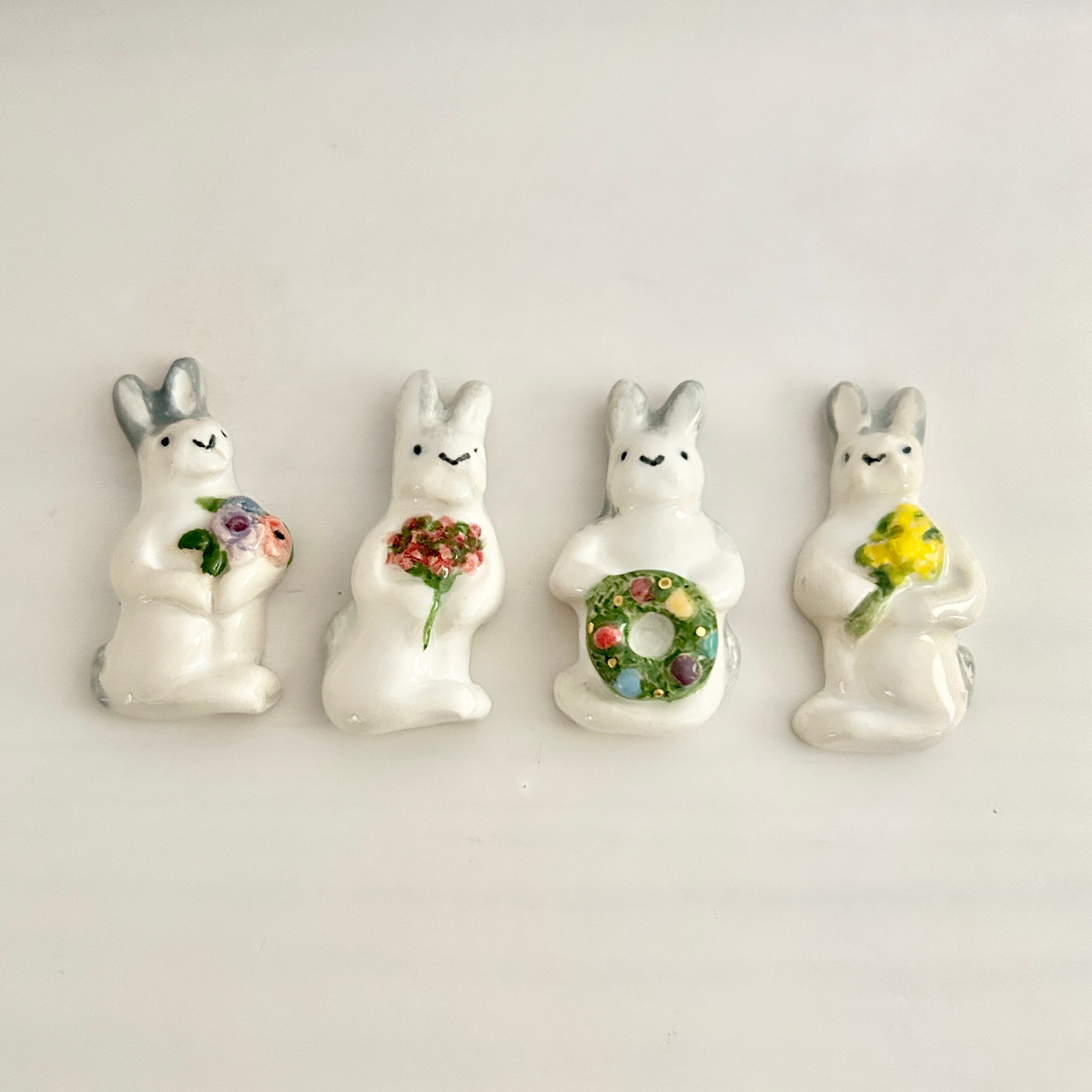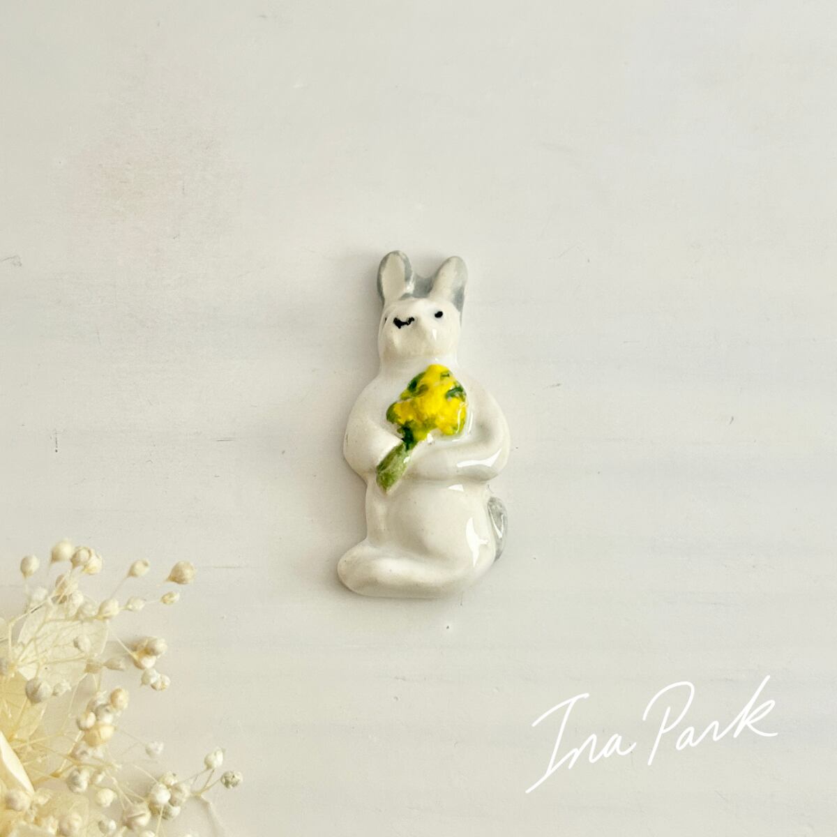 【新作】2025 エリック・エ・ジル ミモザの花束を持つうさぎのフェーヴ フェーブ フランス製 工房 陶器