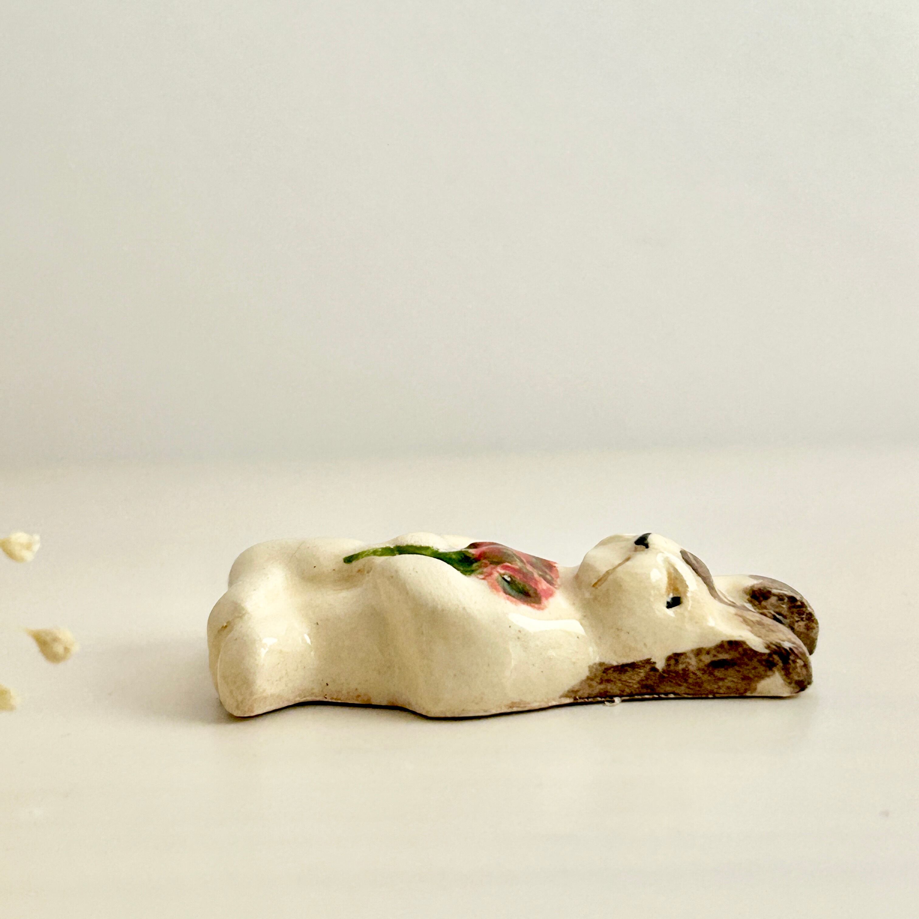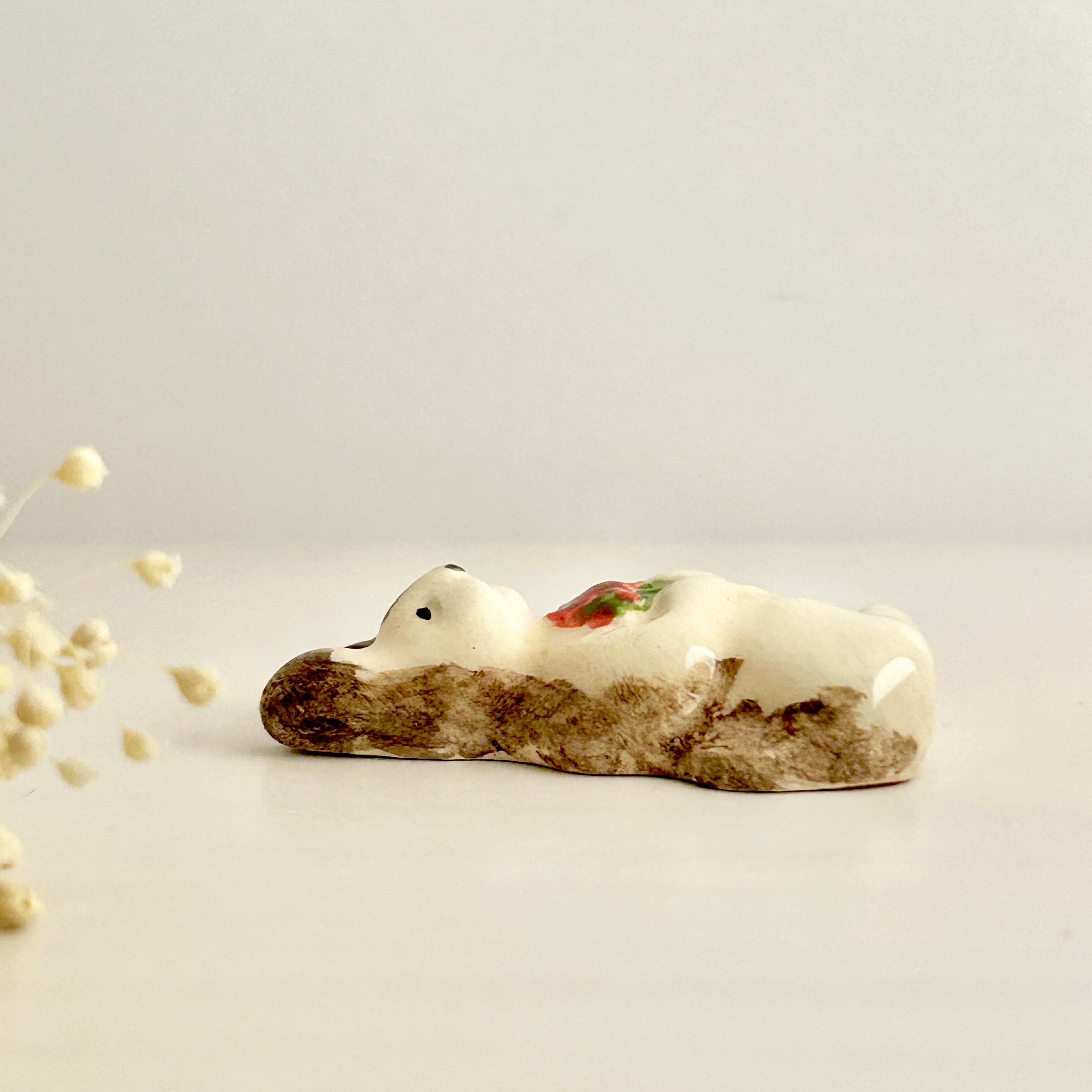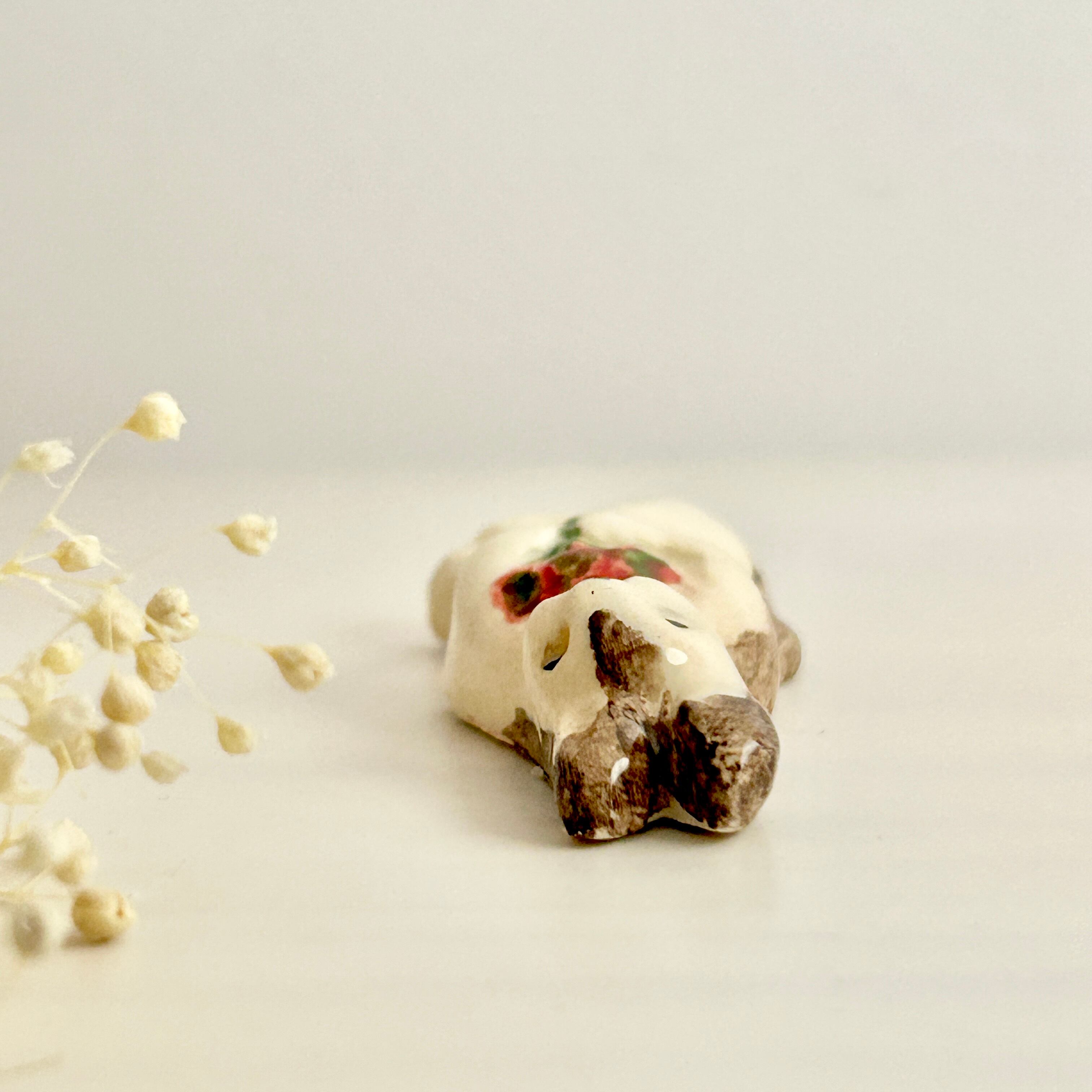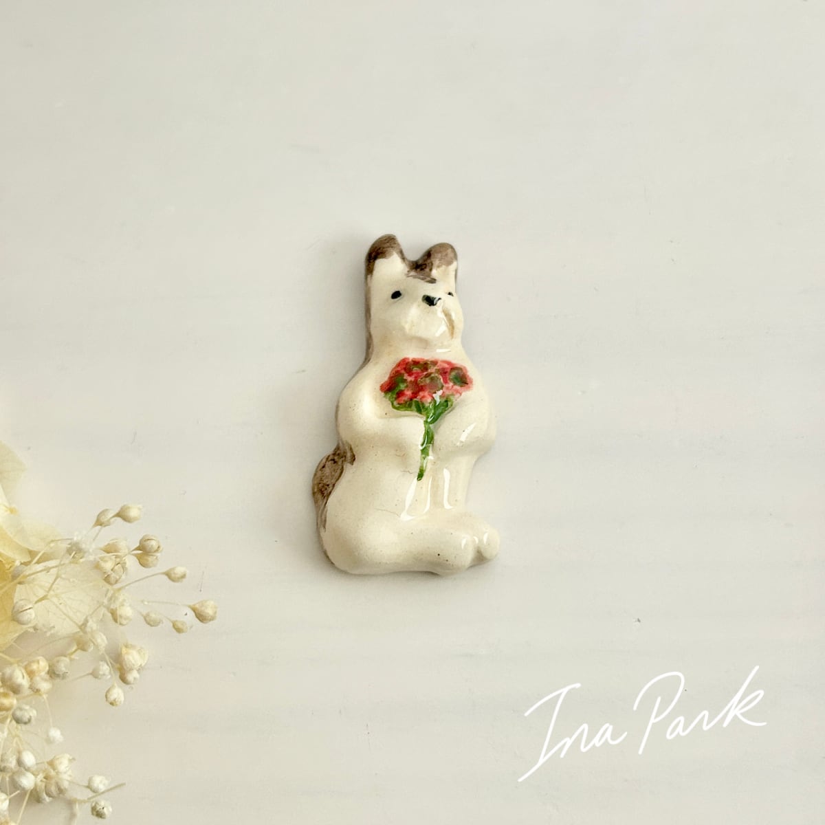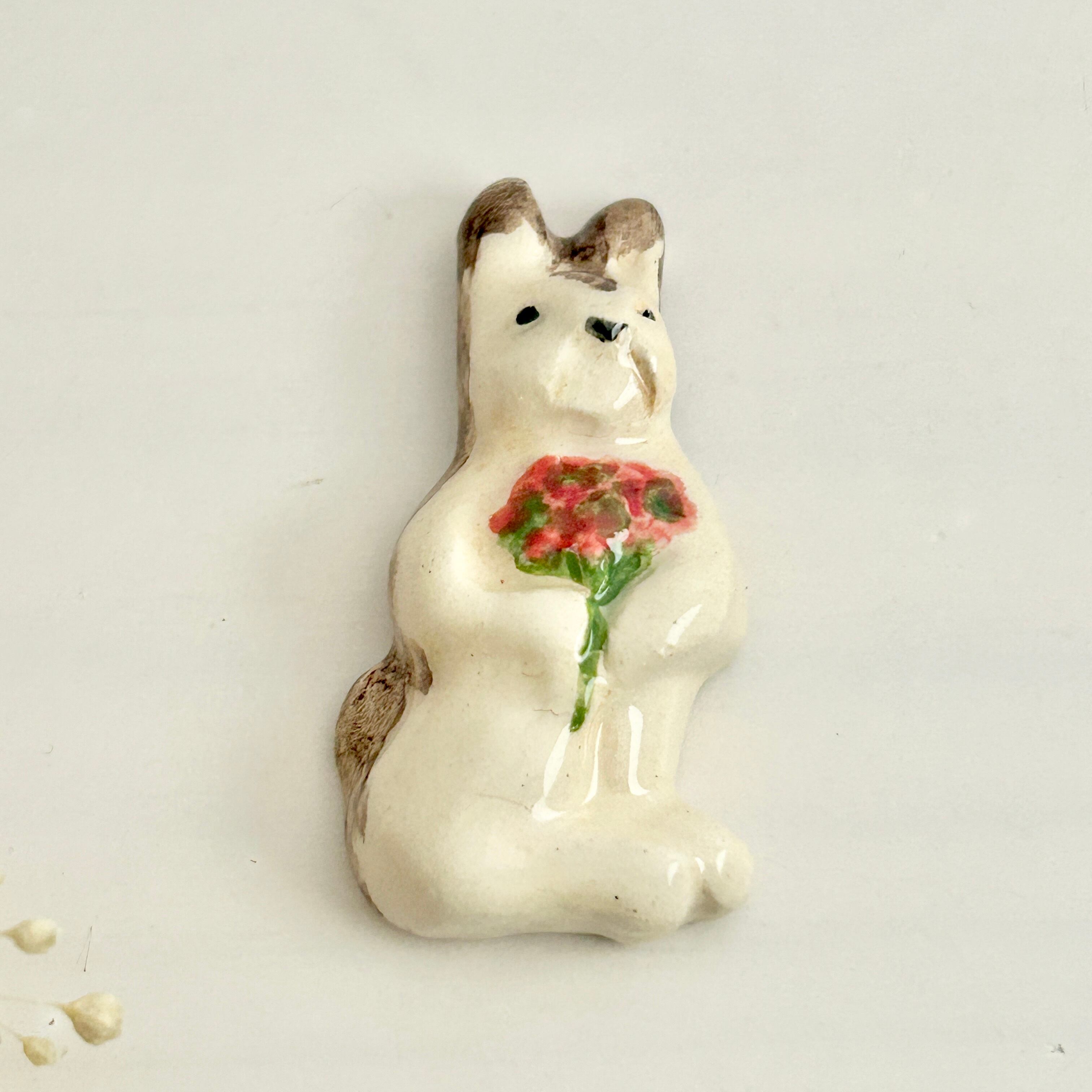 【新作】2025 エリック・エ・ジル 赤い花束を持つうさぎのフェーヴ フェーブ フランス製 工房 陶器