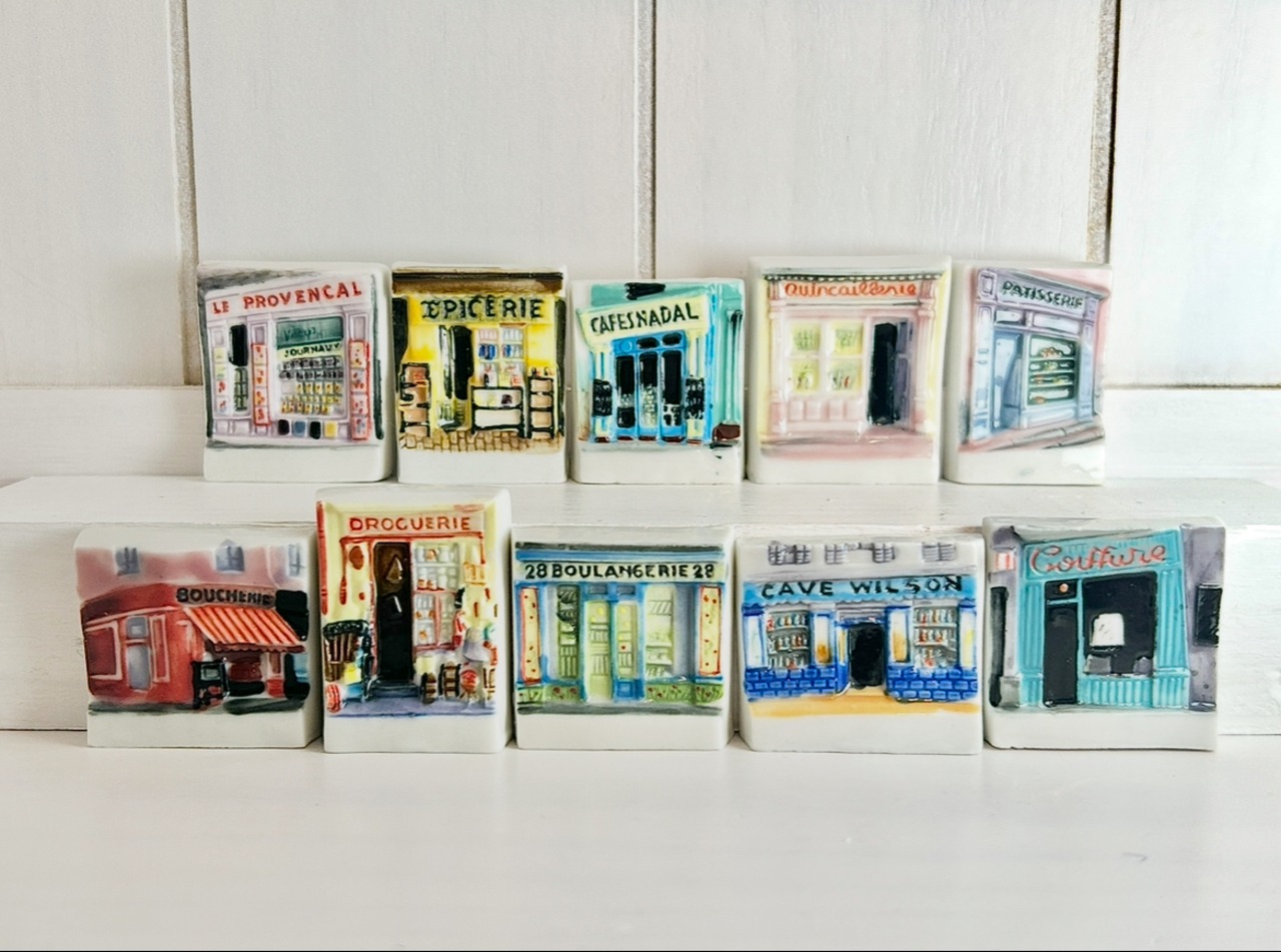 フランスの通りにあるお店の外観をイメージしたフェーブたち。